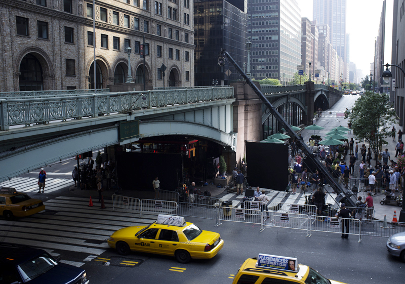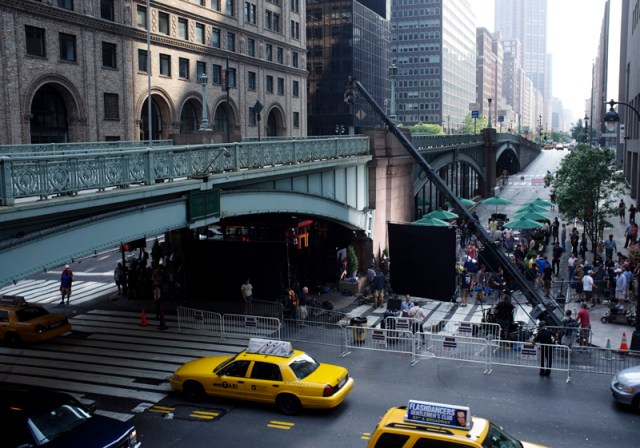 The name on the movie production signs lining the street didn’t seem to match the props being installed around Park and East 42nd. A huge crane lowered smashed cars and pieces of airplane fuselage onto the street on one side of the Park Avenue overpass, while on the other side a massive camera crew tried to capture a cafe scene despite throngs of Saturday tourists and a couple of curious Australians taking their own shots. When the camera finally spun around directly onto us and the crew started yelling at us to move, it was clear there were no group hugs on this set. As it turned out it was Robert Downey Junior’s new movie ‘ The Avengers ‘. And that’s the Marvel comic variety Avenger, not the fabulous Steed and Mrs Peel….