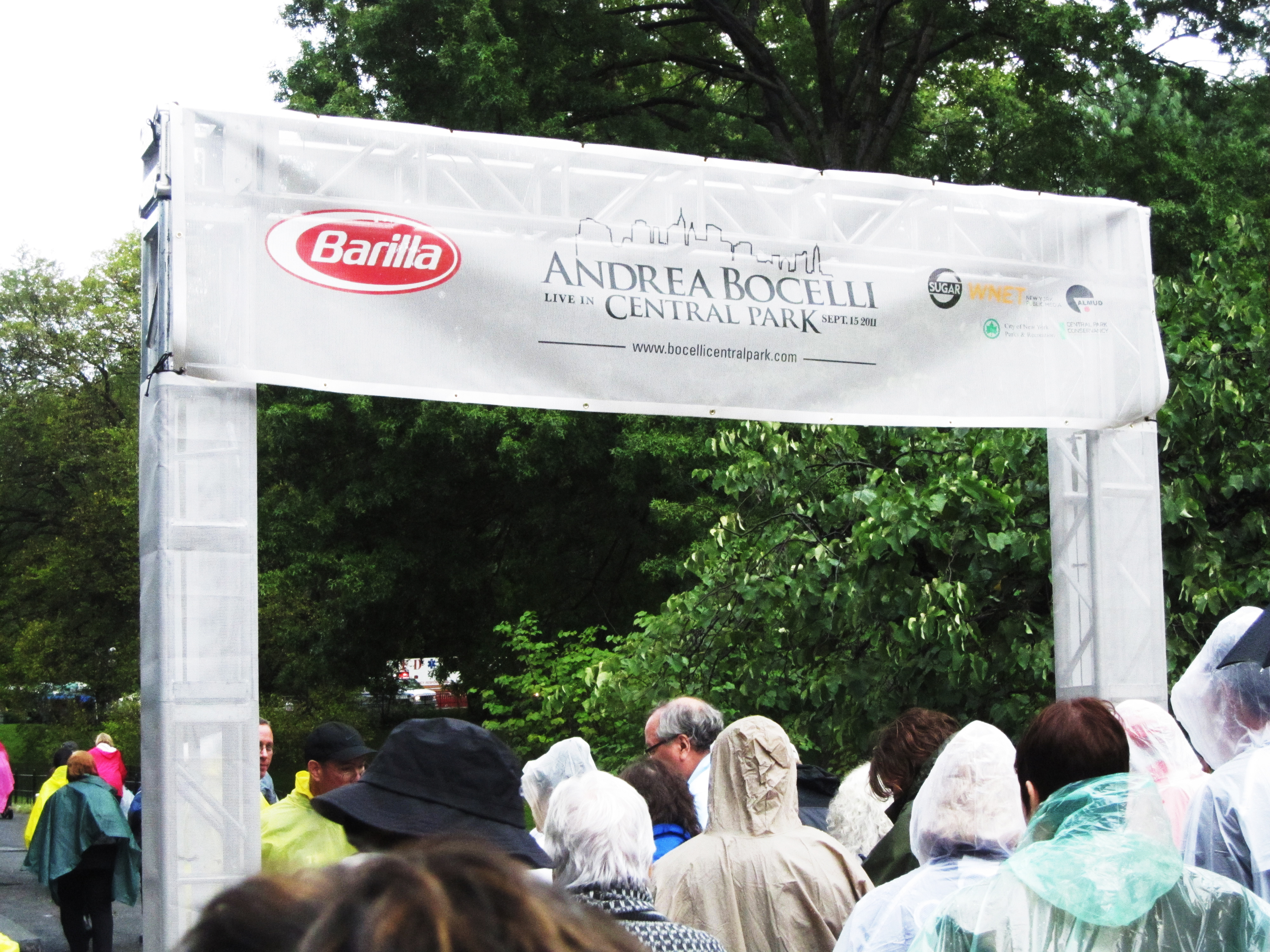 When I heard Andrea Bocelli was to perform in Central Park, I immediately thought of the amazing concert I missed years ago when Simon & Garfunkel sang to thousands of fans in the Park on a balmy summer evening. What an opportunity! This time I would be there under the stars with friends and a picnic and together we would soak up that magnificent voice. Unfortunately ‘soak’ was the operative word! Rain was forecast early in the day, but we were optimistic as we joined the queue around 3 pm that our raincoats and umbrellas would protect us from a passing shower. The good news was that being with Leanne & Gabby the guide dog, we received special access to the front area of the concert with chairs provided. The other news was that it started to rain about 4pm, the temperature dropped dramatically, and wintery conditions swept through the Park for most of the night. But in spite of the wind and rain, the police helicopters chopping through the emotional strings of ‘O Sole Mio’, and the confusion about what was actually happening on stage, we had a great time. There was Andrea of course, the NY Philharmonic, a parade of famous musical guests and best of all, the comraderie of the crowd. New Yorkers love Australians – one fellow spoke at length to us about his R&R in Townsville during the Vietnam War while another kept the umbrellas down in front. It was a memorable concert, if not for the reasons we expected, and the absolute highlight was when Tony Bennett joined Andrea on stage to sing ‘New York, New York’ – and we were there to hear it!