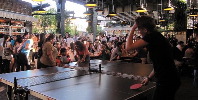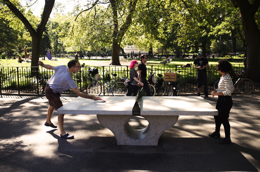Ping Pong is still the rage here, and a chance encounter with ( our ) table’s designer in Tompkins Square Park on the weekend gave news that two new table/sculptures are about to be installed in Riverside Park. Another is ordered for Sydney in 2012, so best polish up on your game in readiness. In fact it doesn’t end there. The Standard Hotel, a trendy addition to the West Village and an architectural feat being built over the Hi-Line, has a couple of regular tables in their beer garden. Looks like pool tables are out and ping pong is in. But someone will have to come up with a replacement tag for ‘pool shark’, ping pong shark just doesn’t seem to cut it!
