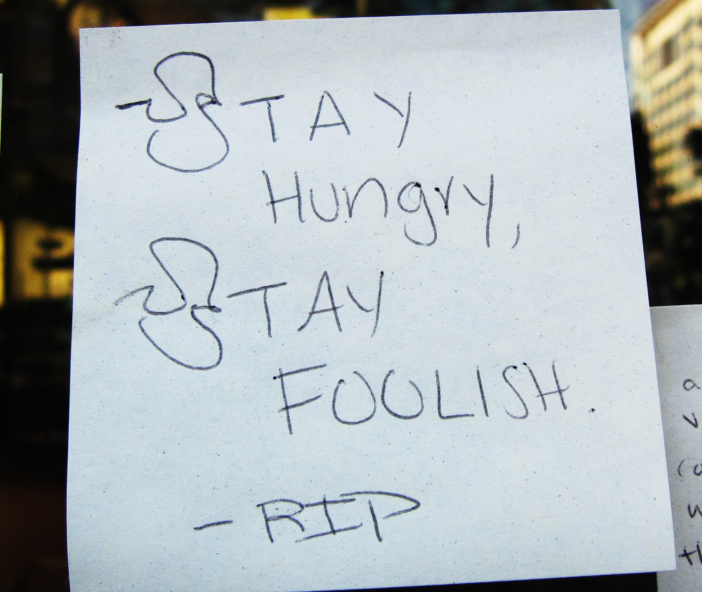 The windows of the apple stores in Manhattan are covered with thousands of messages marking the death of Steve Jobs on October 5th. With many others on the weekend, we paused to read and reflect on his amazing life…
