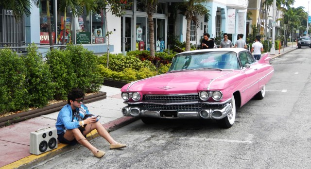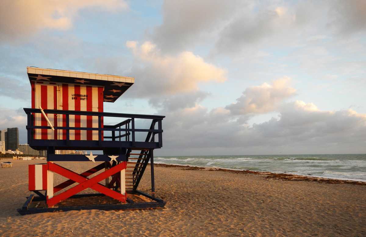 The beach itself is long and wide with a healthy breeze off the sea and lifeguard shacks at regular intervals. The shacks are all individually decorated to fit with the look of the area – an opportunity afforded when Hurricane Andrew blew away most of the peninsular in 1992. Maybe it’s the transience that living in a hurricane zone instills, but there is a relaxed vibe in South Beach, it’s laid back and self indulgent. Even the police follow suit. Traveling along the road from the beach to the lagoon for a diving lesson, we encountered police cars at strategic places, sitting unmanned but casually monitoring the speed of the traffic. At Starbucks I encountered a woman with an outrageous handbag made of feathered rosebuds. When I asked her if she made it herself she purred ‘Armani’…. So it’s easy to see how fashionistas and eccentrics would fit right in here, and how the coffee guy would have no second thought about calling out ‘Versace…..expresso for Versace….!’