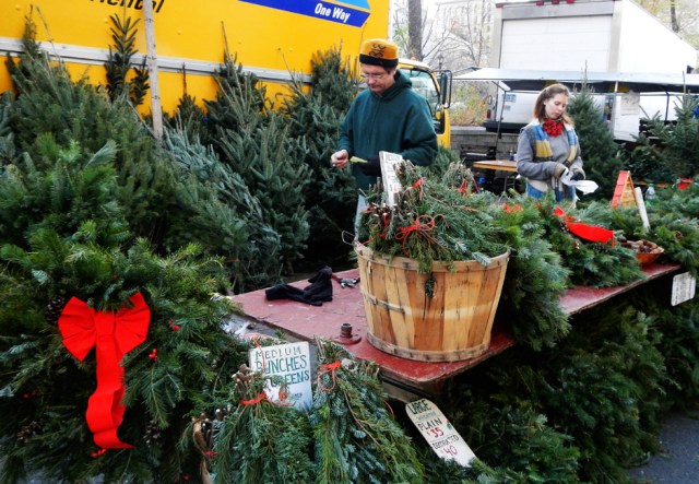 If there is one thing I really love about Christmas in New York, it’s the atmosphere at the markets. Even though the farmers have less produce to offer, there is an abundance of hot apple cider and the spicy cinnamon aromas mixed with the smell of freshly cut pine trees make for a real festive fix. We stopped off at Union Square to share the quest of people choosing their Christmas trees and having them trimmed and tied for the journey home. You could buy prebundled real trees from street side vendors all over the city, but at Union Square it was a delight to see people pausing and measuring up the type and the size of the tree, or, in giving in to the size of their apartment, opting for a sprig for the front door instead. According to the Australian guy helping out with the transactions, these trees do not shed their needles, so they stay intact throughout the season, until they are collected by the Central Park trucks and mulched for the sake of tucking in those that shine less bright for longer.