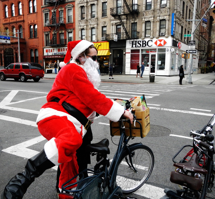 Father Christmas was also on the move early this season, being spotted on the subway, trying to catch cabs and even trying to balance on my bicycle. But despite the craziness of all the Santas, the sparkle of decorations and the allure of shop windows, my absolute favorite part of Christmas this year happened in the middle of the night. We flew in from Vegas at about 10pm on Christmas Eve, exhausted but so happy to be back in the big apple. The city was quiet, and there was no-one on the street apart from cabs. Just as we were about to drift off to sleep at midnight, the church bells on Park Avenue started to chime with ‘Joy to the World’. I felt as though the city was welcoming us home and sharing a special secret moment. It suddenly felt like Christmas !