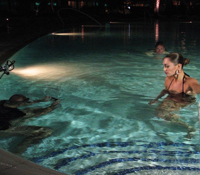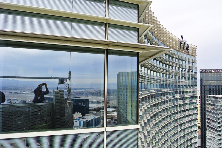 Our 10 days in Vegas were not typical. We didn’t get to the poker tables, Sean used an aqualung to swim in a three and half foot swimming pool, and at least 2 days were spent in a window washing cradle 60 floors up in the air. It was quite an adventure! With 10 principal models and about 30 extras, we shot a new campaign for Aria Resort and Casino in five different locations – the pool, the poker room, the sky villas, the fountain and the high roller Carta Privada. Each venue had it’s own story of ‘Modern Seduction’ to be told in photography and film. But the sheer size of the resort with the vast distances to be walked front and back of house, meant my own story was more like old fashioned exhaustion. We shot 14 hour days along side the crews shooting American Idol, and the knowledge that J-Lo was in their lineup had the local punters looking twice at our models. It was all part of the razzmatazz of Vegas, the goldmine in the middle of the desert where anything can happen and dreams can come true.