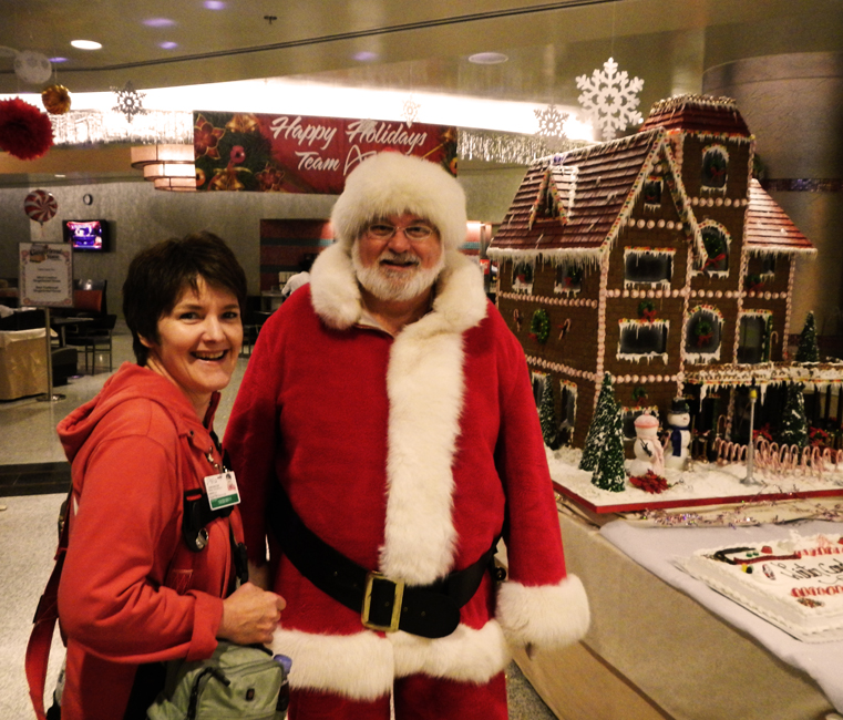 In fact we shot with $2 million worth of jewellery, borrowed from the casino and accompanied at all times by a well armed guard, who allowed an earring to fall into the pool for the sake of that story, in which a fully dressed man leapt into the pool to retrieve the piece for a damsel in distress. Good grief, would you buy a $2M necklace & earring set if one of the pieces had been wet…?!? The Sky Villa we shot in cannot even be paid for, it is reserved as a gift for those high rollers who breeze into town and win ( or lose ) a million or so at the tables. The Villa has a gym and a barber’s room, it has a toilet with a lid that lifts when you enter the bathroom and warms when you sit. That will really make you feel better. The high roller room we filmed has a minimum bet of $500. The casino tokens on the poker tables have trackable microchips inside them so the house knows the minute one is taken off the table. ( Actually the hotel uses similar technology for the minibar in the rooms. If you lift a box of chocolates or a miniature of vodka, without immediately putting it down again, you are billed for consuming it… ) So it’s another world. All they need is your credit card. The real red casino dice I was given by Father Christmas in the staff canteen on my first day in Vegas feel great in my hand. I’m going to enjoy playing with them and only having to worry that my choices are going up a ladder or sliding down a snake!