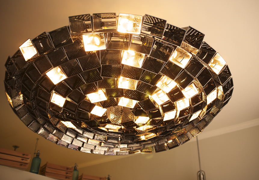 Flash forward to Stanton Street where a chandelier made from dozens of shiny silver graters lights the room, cheese boards stack one on top of the other to create a menu space, and a tiny mouse-door going into the kitchen adds good humour ( like the holes in the business cards ) that the owners abound in. Even if you weren’t already a cheese devotee, their enthusiasm would make it so. It took two years just to find the spot, and quite a few 14 hour days to launch, but what a unique menu and a thoughtful presentation they have. We tried the gruyere / chevre / leek confit & pancetta with the most delicious tomato soup I have ever tasted and then our hosts insisted we try the stilton / muenster & pear puree combo. Fabulous. A cheese board in a grilled sandwich. And a glass of wine to go with it. How civilized!