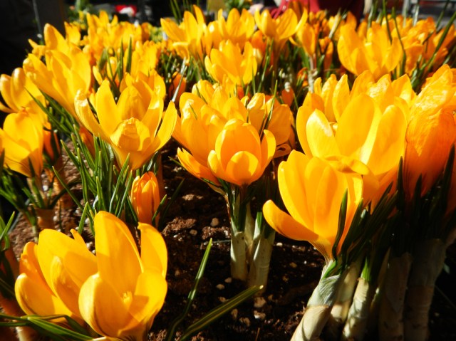 The crocuses were absolutely spectacular at the markets on the weekend. In their classic yellow, white and purple colors, they herald the first hurrah of Spring. Not that we had such a bad winter in New York this year, but after months of bare trees and empty gardens there is something very special about all that color and energy – and the promise of more to come….