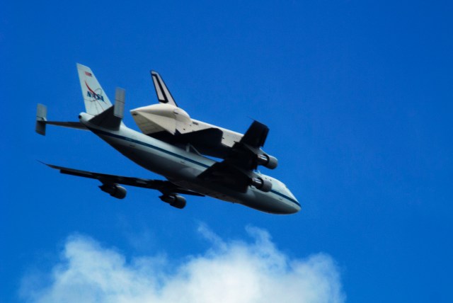 ‘Enterprise’ created a spectacle on the west side last Friday with a majestic flight up the Hudson. The shuttle was transported from Washing DC to it’s new home at the Intrepid Museum in New York on the back of a NASA 747 jumbo jet. You certainly don’t see things like that every day. Even though the shuttle didn’t ever go to space, it was the history and association with Star Trek fans that made the ship famous. Sean positioned himself well ahead of time on the end of Pier 79 to ensure he had a clear shot of the Trekkie treasure. But just as the shuttle was about to appear, homeland security asked him to move as the ferry terminal was a no-camera zone. So there was a last minute flurry but that didn’t prevent a perfect shot. Meanwhile Spock was waiting with fans at JFK, no doubt many of whom will be making their way to London in October for the celebration of the Star trek Universe. Some will travel by commercial aircraft, whereas others will be hoping for Scotty to beam them up…