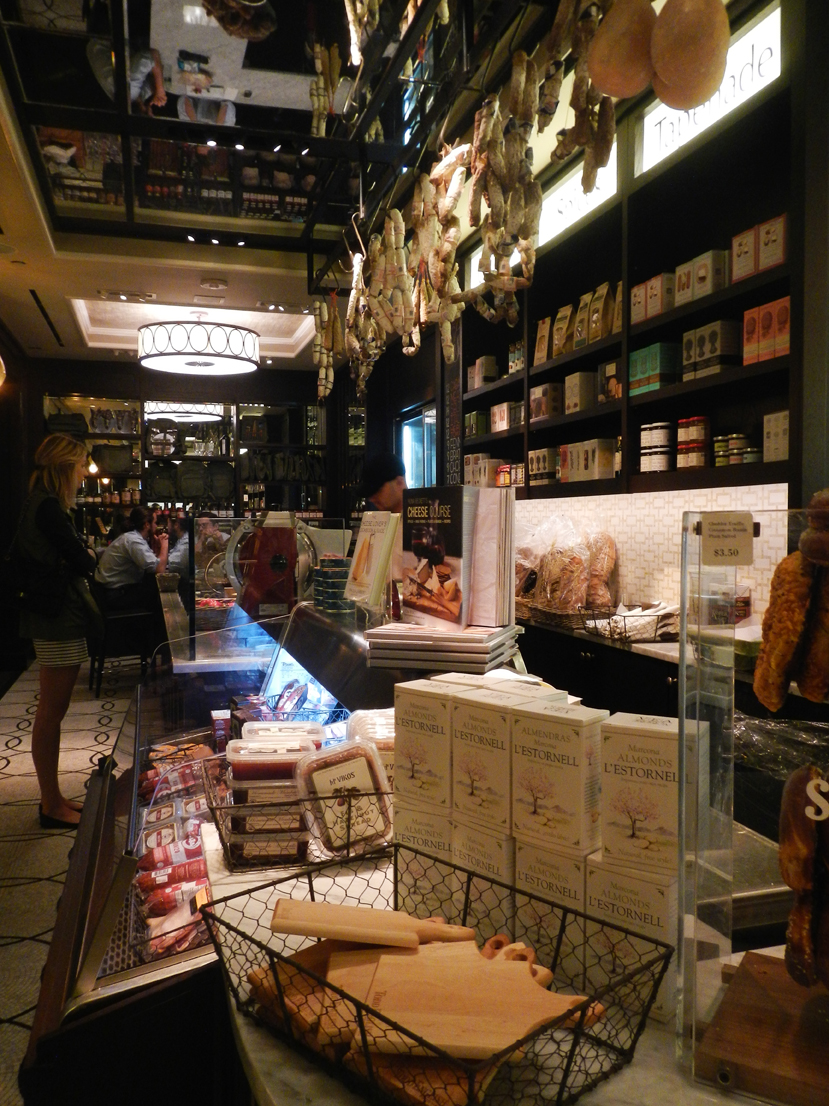 When the Plaza Hotel was renovated a few years ago and most of the rooms were turned into private condos, there was much dismay about the dismantling of the old kitchens in the basement. While the amenities were not preserved, they were transformed into the Todd English Food Hall, which has given the idea of lunch at the Plaza a whole new audience. The hall is a conglomerate of many smaller gourmet vendors, where you can buy pastries and coffee to go, find some fabulous cheese and sausage, or sit down for sushi or a burger. It’s that classic American combination of casual and flash. There is still a connection to the old Plaza in the smattering of photos of President Kennedy and Grace Kelly on the walls – and of course the unmistakable signature of Eloise with her pink party room around the corner. So whether you are off to the Park for a picnic or on the wrong side of the pond entertaining Penelope, The Plaza will play into that lovely memory of the Manor…..