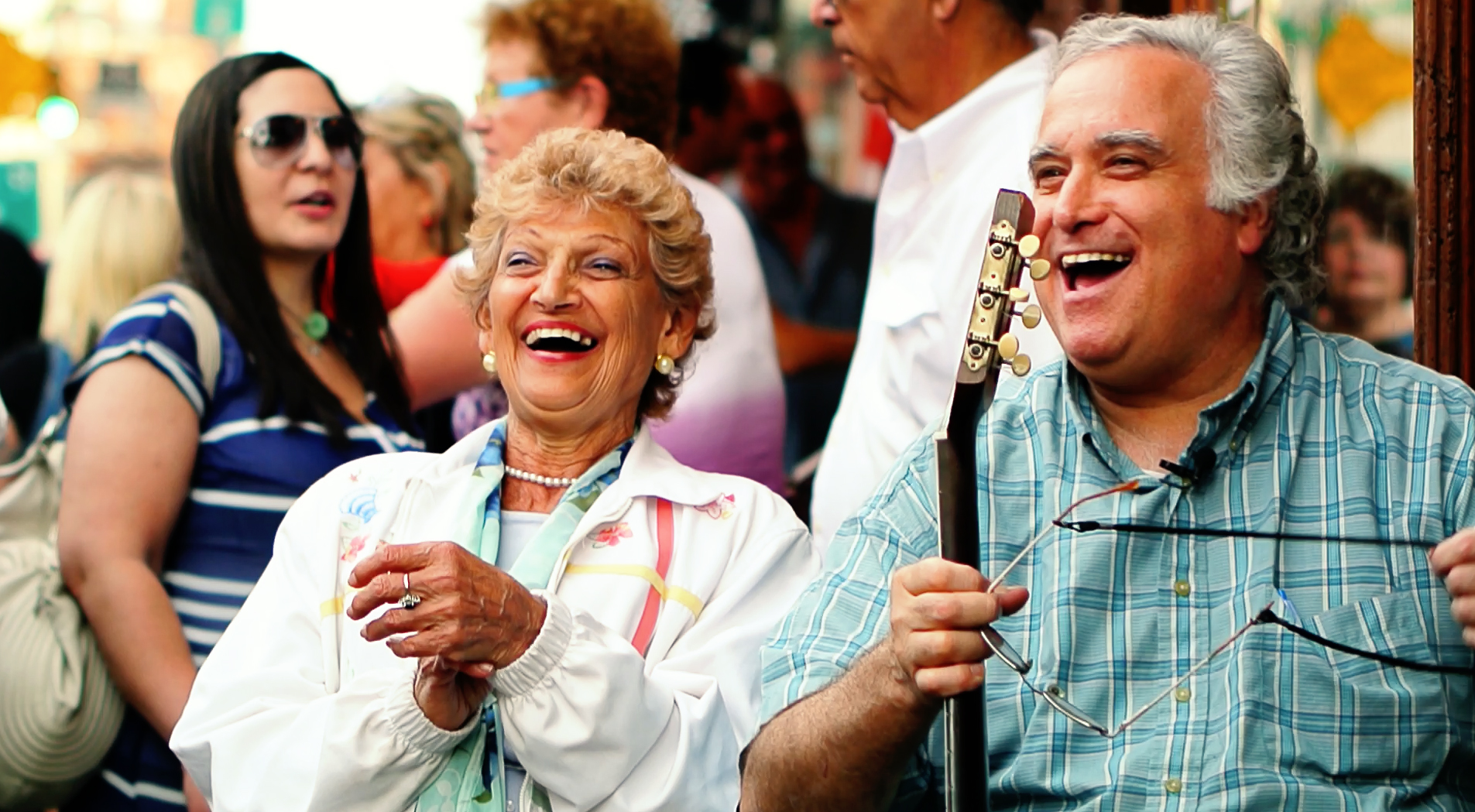 The San Gennaro Festival is currently being celebrated in Little Italy, and after years of avoiding rather than indulging in the tourist packed festivities, this week I found the big heart of Little Italy still thrives with la dolce vita. Sean and I were filming our documentary with Joey so we had the privilege – and fun – of talking to long-time local characters behind the scenes. San Gennaro is a religious commemoration of faith surrounding the miracle of the Patron Saint of Naples, but above all it is a celebration of life and a special time when past & present residents get together. The area around Mulberry and Grand streets were pedestrian only, and with the opportunity of sunshine and serendipity, our cameras were working overtime. We ate cannoli’s and meatballs and drank expresso, and we heard fabulous stories from Baby John and Fat Ernie. Ernie even sang for us, playing his guitar while he sat in front of his shop, acknowledging friends as they walked past. An elderly woman who used to live in the neighborhood joined him for an aria, and at the end we all had tears in our eyes. There will be a lot more to tell when the movie is finished, but for now here’s a picture to share….
