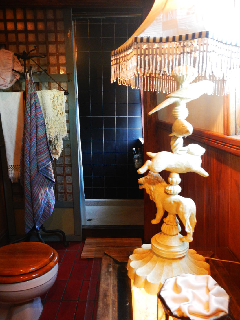 There are basically 3 levels on the ferry, with original outward looking wooden benches wrapped around the terraces. A well organized workshop sits in the heart of the ship, and at the stern 6 chickens live happily in customized coops and a view of the dock. On the pier alongside the ferry is a tire garden – the corn was finished, but there were still bountiful tomatoes and artichokes. In the same organic vein, to get back to the shoreline and travel on to Manhattan, you have to walk through a small dog run. Renovations to the pier may eventually change this, but for now this provides a ‘gateway’ to the private space of the B&B.