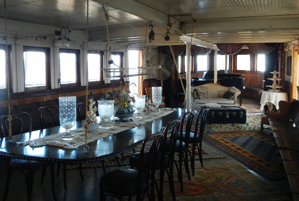 The Yankee Ferry is the work of 2 colorful artists and a small dedicated team who are committed to the vessel as a living work of art. Having survived two world wars as an armed troop carrier, worked transporting immigrants from their arriving ships to Ellis Island, and then for years tripped around the harbour with tourists, the ferry has most recently been massaged and moulded into a modern salon. From the moment you cross the drawbridge, you are in a world of rich curiosities. Lampshades are sculpted, bed linens are hand sewn, old aquatic features are given new functionality, and fresh flowers are everywhere.