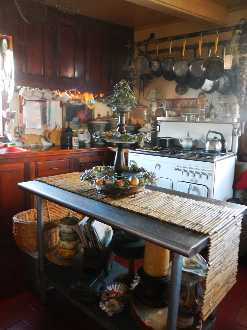Not surprising, the accommodation is not typical. The crew quarters, originally built for 16 men, can work for a family or for a group of friends. You can have a single nook upstairs, or a cabin with fold out trunks and expanding hammocks that will sleep more or less, and so you pay for the space you want ( usually $147 per couple + $50 for each person after that). There is an enviable kitchen, an elegant dining room, and a fabulous communal living area that is perfect for reading, or writing, or just looking at all the pieces that together create a Monet mood.