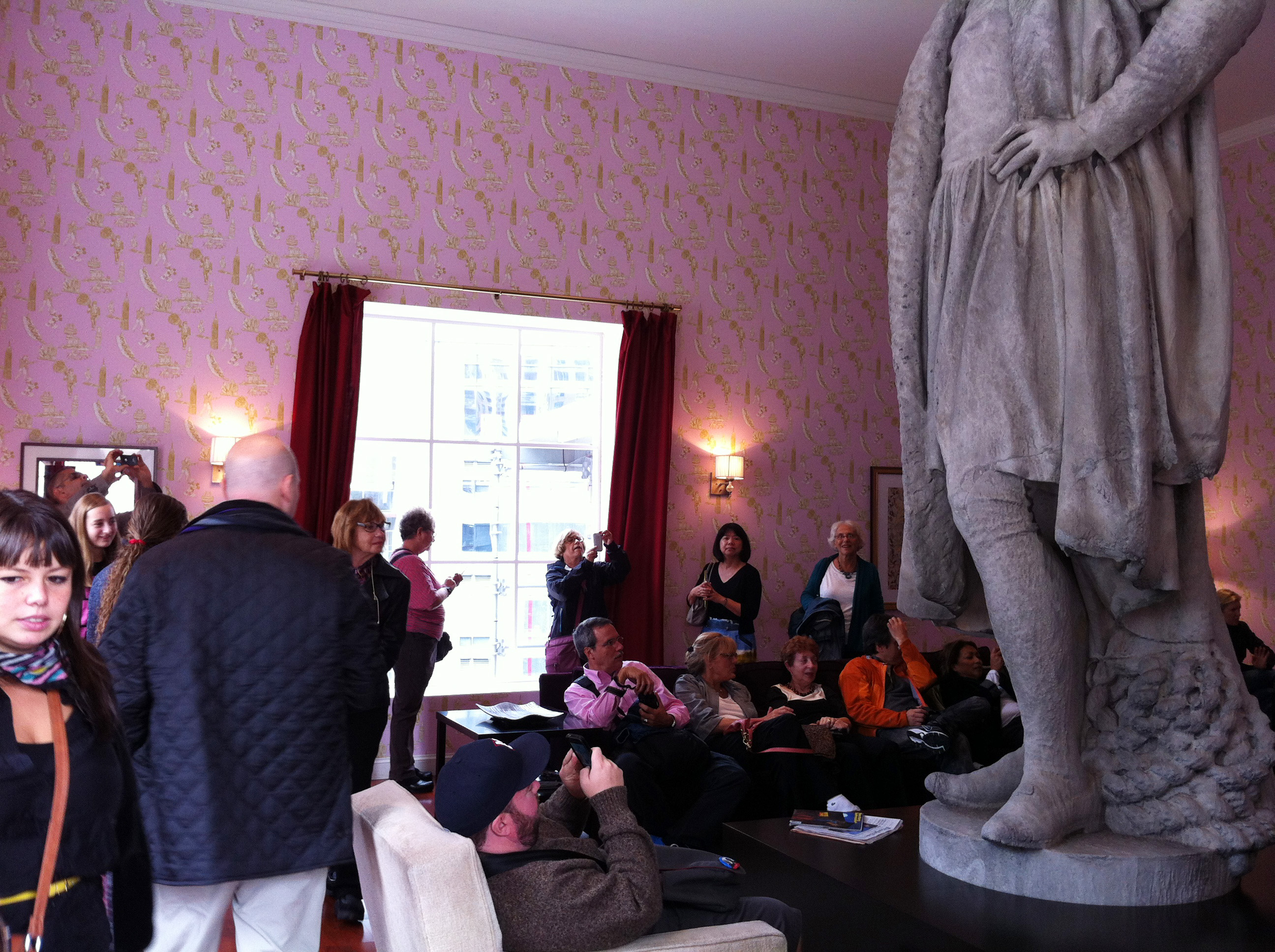 By the time we waited for our timed entry in a curious queue, and then climbed the six flights of stairs, a camaraderie had grown between the visitors. Everyone chatted together, a little boy pulled a tooth while we waited and a woman in front worried about the liability of the scaffolding. So it already felt like we were a group of friends, and then walking into a comfy living room to meet Christopher, all we really needed was a cup of tea and a biscuit. The mood was what made the ‘exhibition’, it was fun and brought a great new life force to this historic man. Christopher is going to be accessible to the public until November 18th, and I’m tempted to pay him another visit. Except that maybe I’ll be queuing at the other end end of the city. Just imagine if the Statue of Liberty took visitors in a similar situation – oh la la!