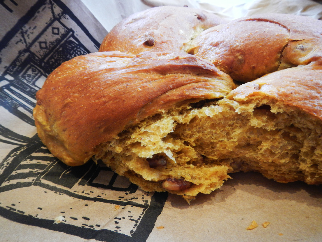 Amy’s Bread on Bleeker Street is a good place to be especially on Tuesdays, Thursdays, Fridays and Saturdays when they bake their cinnamon and raisin twists. But on Saturday after a sunny ride downtown via Washington Square, there was even another reason, pumpkin and pecan bread. Of course it is the season for all things pumpkin – Starbuck’s have latte’s, The Bakery has marsh-mellows, you can even find pumpkin beer… But Amy has the artisanal advantage of being a real almost old-fashioned bakery and you can’t go past this spicy, almost hot-cross-bun tasting alternative. I couldn’t anyway…