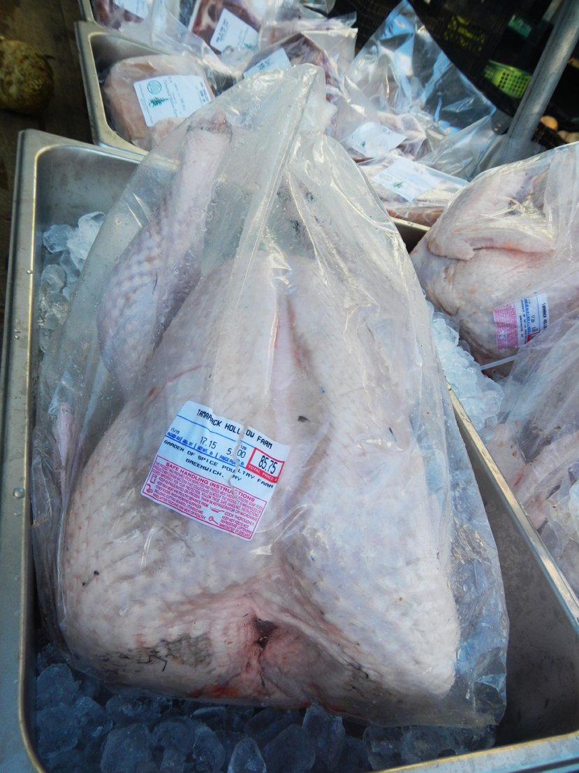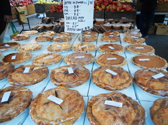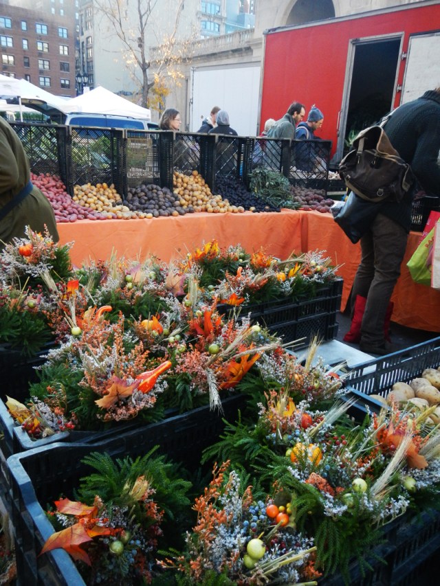 It is a glorious day here in NYC and Thanksgiving is in the air. This is the busiest travel day of the year in the US, as everyone scrambles to get where they need to be. Lucky for me I have a bike, and my family is safely out of the path of bushfires in Port Lincoln. So I needed only to get to the markets today and what a feast there was. If the sheer volume of pies didn’t astonish you the colour of fresh produce did. Red cranberries, purple cauliflowers and black potatoes caught the sun next to orange squash and blue pumpkins. Monster turkeys created last minute envy in those who preordered from the supermarket, strangers chatted to each other about the celebration that would grace their table, and shopping bag philosophy gave us pause…