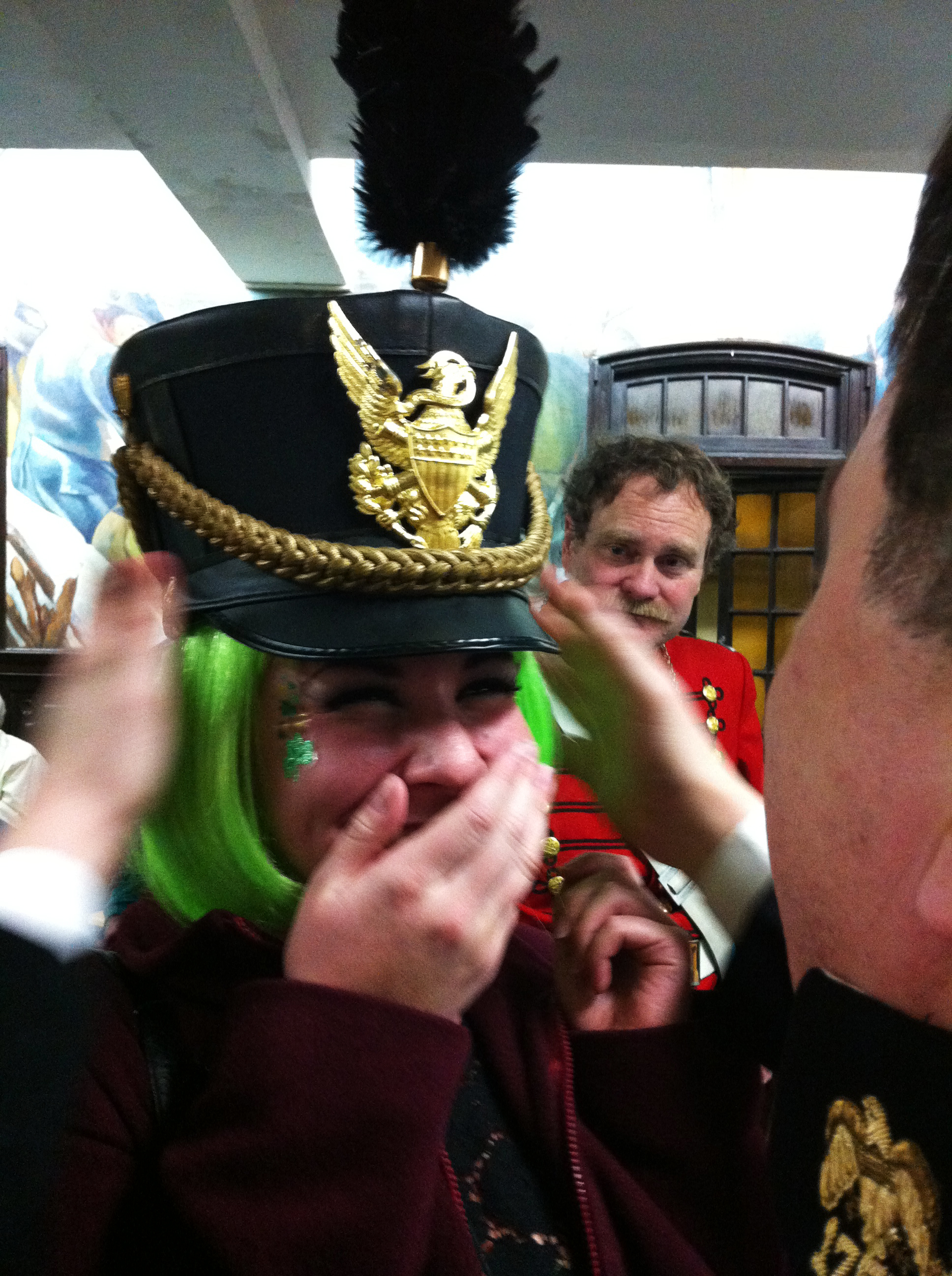 It wouldn’t be St Patrick’s Day in New York without corn beef and cabbage with the fighting sixty-ninth! While much of the city is swamped by revelers reminiscent of New Years Eve, the Armory on Lexington Avenue becomes a focal point for the extended family of the 69th Regiment. Originally Irish immigrants filled the ranks of the brigade, and this heritage is celebrated every Saint Patrick’s Day when the regiment marches from the official parade on Fifth directly to the Armory. There are pipe bands and soldiers and much ceremony, but the great fun is in the mess hall, where the walls carry the stories of past battles and old soldiers never die. The murals were painted by artists during the Great Depression and the atmosphere is heightened by the music of tin whistles and kettle drums. All you need then are some iridescent green eyelashes, green hair, or even a green mustache, and of course a Fitzgerald to make the report…
