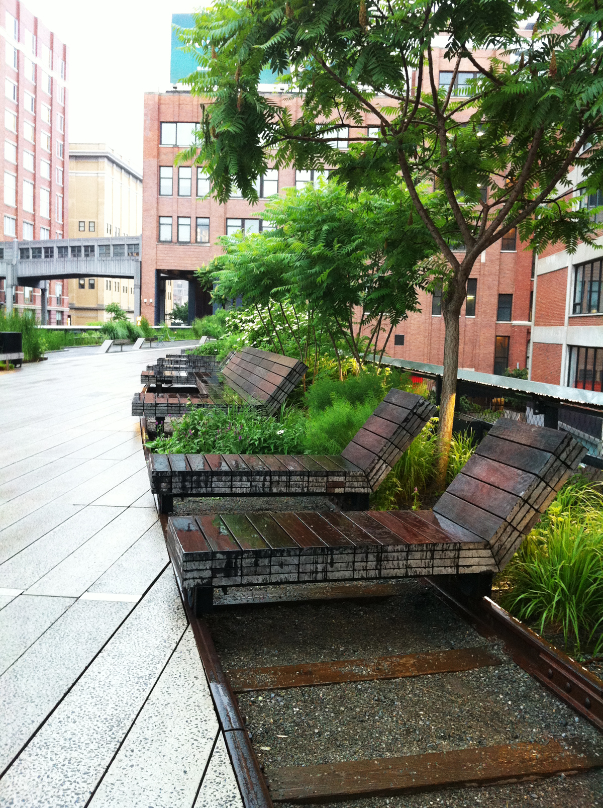 The best thing about Winter in the middle of a New York Summer is finding popular places almost empty. On Thursday night the High Line was all but deserted, with the pending storm creating an electric light that accented the colours and features of the west side walk. It was ours for the moment, allowing us to measure and meander at will in lush green surrounds. What a treat!