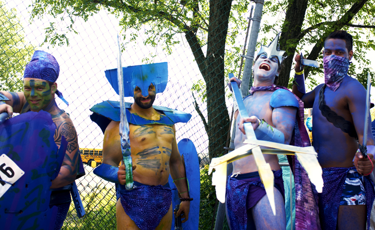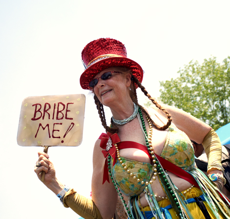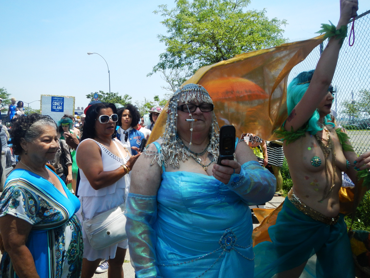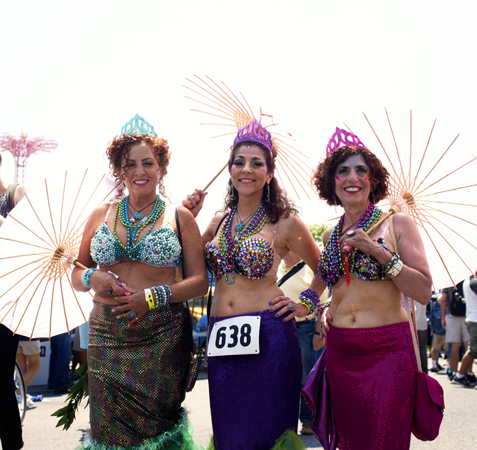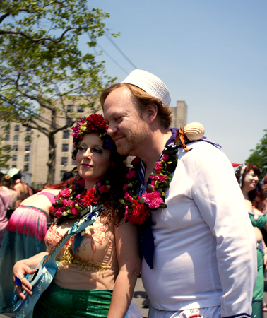 Coney Island has a carnival reputation. At any time of the year you are going to find sword swallowers, sideshows and tattooed ladies. But there is one day in Summer that seems more outrageous than the rest, when thousands of locals come together for the Mermaid Parade to party in painted, shelled, bejeweled and sometimes brazenly bare, self constructed costumes. It has been a regular event for thirty years and could only really happen at Coney Island. When Sean and I joined the briny buzz before the parade started on Saturday, it felt one minute like the Easter show, and then next like Mardi Gras. But somewhere between the babies and the burlesque, there were a lot of people having a great time..