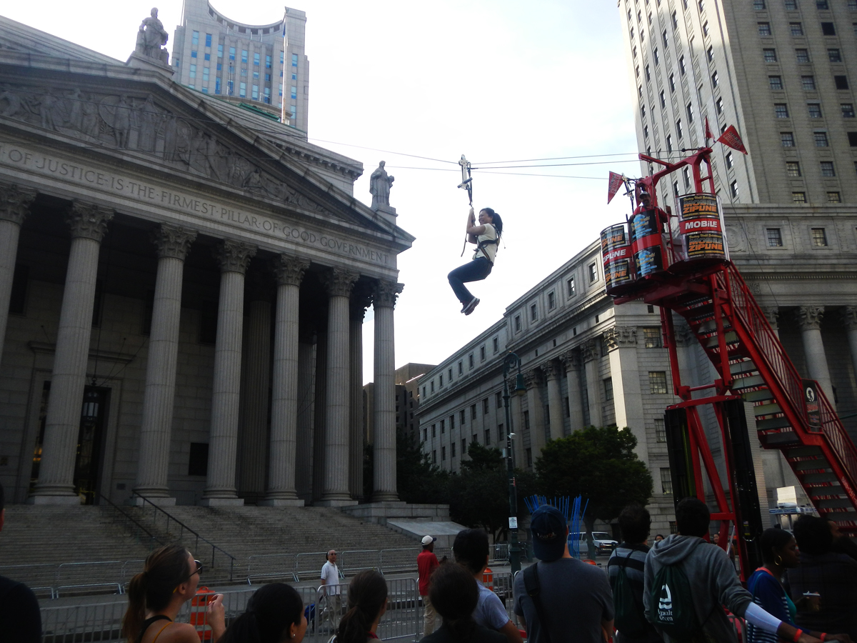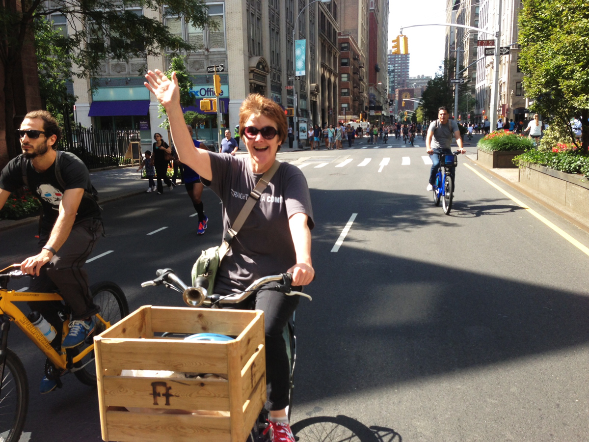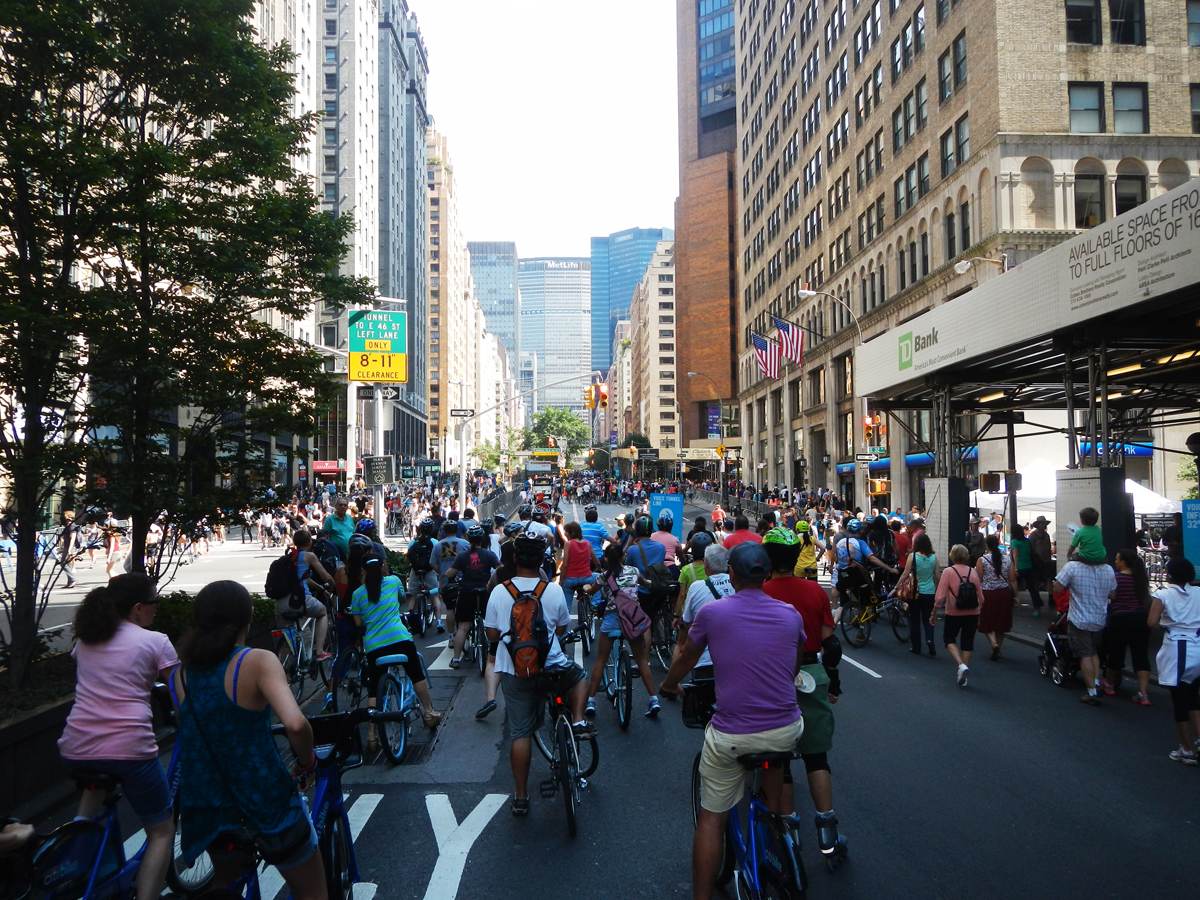 If the queues along Park Avenue were any measure of the popularity of the various entertainments, then the most successful was the tunnel, which runs underground from 33rd Street to meet the overpass of Grand Central Station. For the first time since the 1930’s this tunnel was open to pedestrians, and not for a simple walk-through. There was an amazing light show with sound effects created by people’s voices recorded over music, resulting in a totally eerie experience. It was an art installation, but my awareness of the traffic that would normally be racing through that very space, contrasting with the peaceful aerial view to the skyscrapers on Park Avenue, made it feel more like a time machine. No pressure, but it was time to get back on my bike…