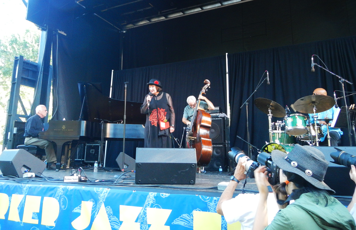 Sheila Jordan was headlining and the darling of the stage. At 85 she was not only a contemporary and friend of Charlie Parker but performed with him and followed him to New York – inspiring his song Following the Bird. It was as though she was channeling him as she sang If I should lose you, and it was amazing to have a legend sing about a legend with the energy and groove that only a lifetime of jazz could deliver. (Interestingly, Sheila didn’t start working full time in music until she was 58 years old, so there’s hope for some of us yet… )