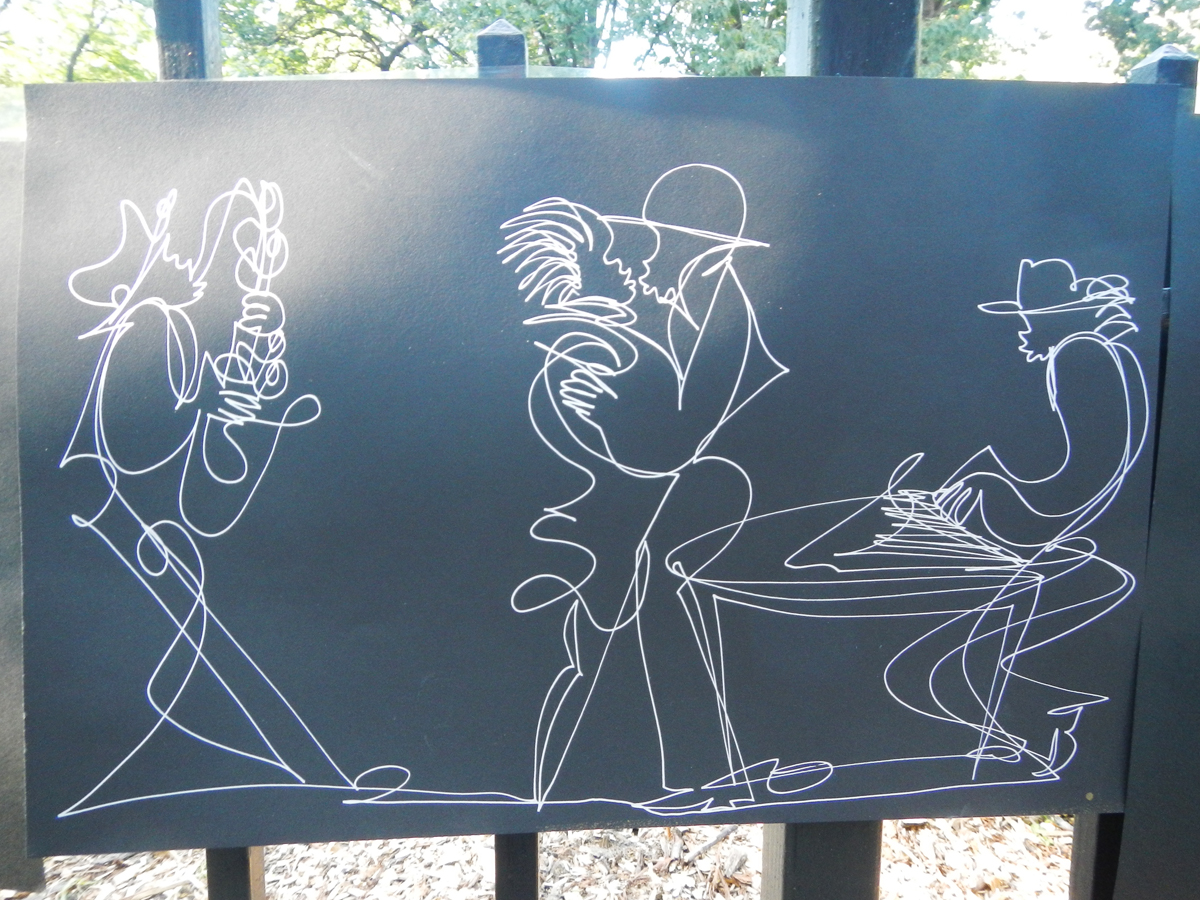 The atmosphere in the park really made the day for me. Couples danced and people tapped and the cool vibes made it a great day to be alive. Music even came from paper – at least that was what Sir Shadow told me. He puts jazz on paper in one continuous line – his pen does not lift – and hums all the while. When I asked him what the music was, he said he just sang what the paper told him. By the look of the outcome that was Charlie Parker alive and well…