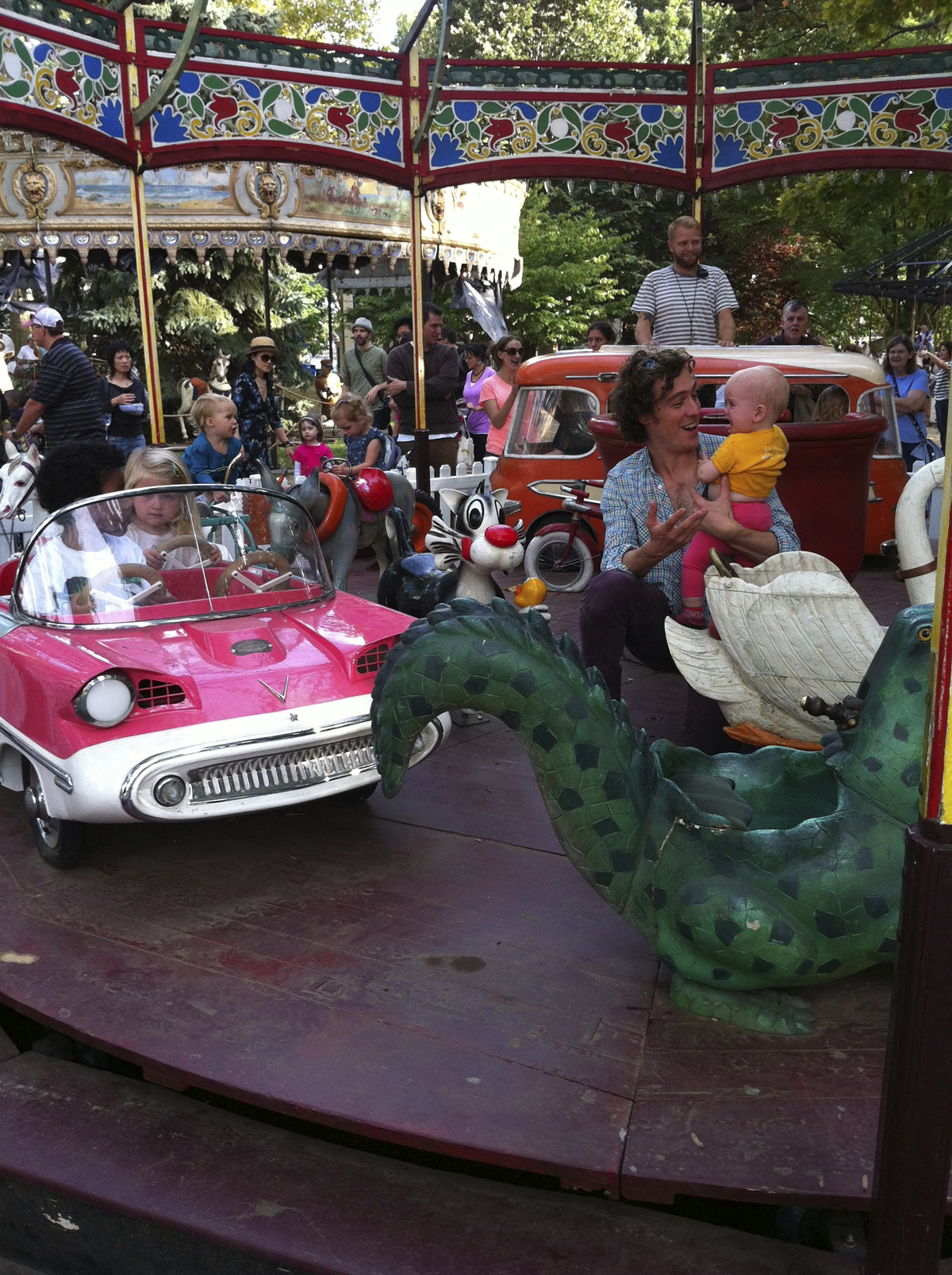 It somehow seems fitting that the Frenchman who made his fortune by creating an enameled iron cooking pot in the shape of a cow, would not only have an amazing collection of vintage carousels, but that he should bring them to Governor’s Island. Francis Staub, who admits his head was once so big from success that it wouldn’t fit under the Arch de Triomphe, presents now more like an artist than aristocracy. His collection is fantastic, with hundreds of unique pieces, some dating back to the 1890’s and all looking like something out of a fairytale. There were individual animals that remain from rides past, wheels of fortune, caricatures of Charlie Chaplin with wooden friends whose feet you could hoop or whose moving mouths you could throw a ball into and win a lollipop. Then the best of all, the carousels that still work, and bring as much joy as they did a hundred or so years ago.