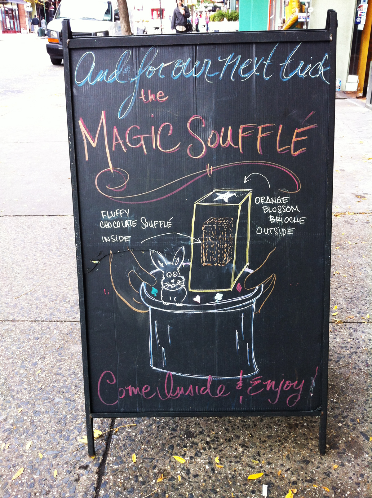 Being in Soho, I was in the neighborhood of Dominique Ansel’s Bakery and my curiosity about the current state of cronuts encouraged me to ride around the corner. There was no queue! The sign out front introducing a magic soufflé implied the frenchman was looking to pull another surprise out of his hat. But for the moment, there were only a handful of people in the store and at 10am, 6 months after the craze took off, I bought 2 salted caramel cronuts without much fanfare. The gold box that had been such an envied treasure only a short time ago was now a little passé, but there was still some status in the $1 postcard – and maybe more taste. The cronut was, after all, a deep-fried donut. The emperor may need new clothes, but if the magic can provide some fun, or inspire a little transcendental travel to Turkey, then we are whey ahead….