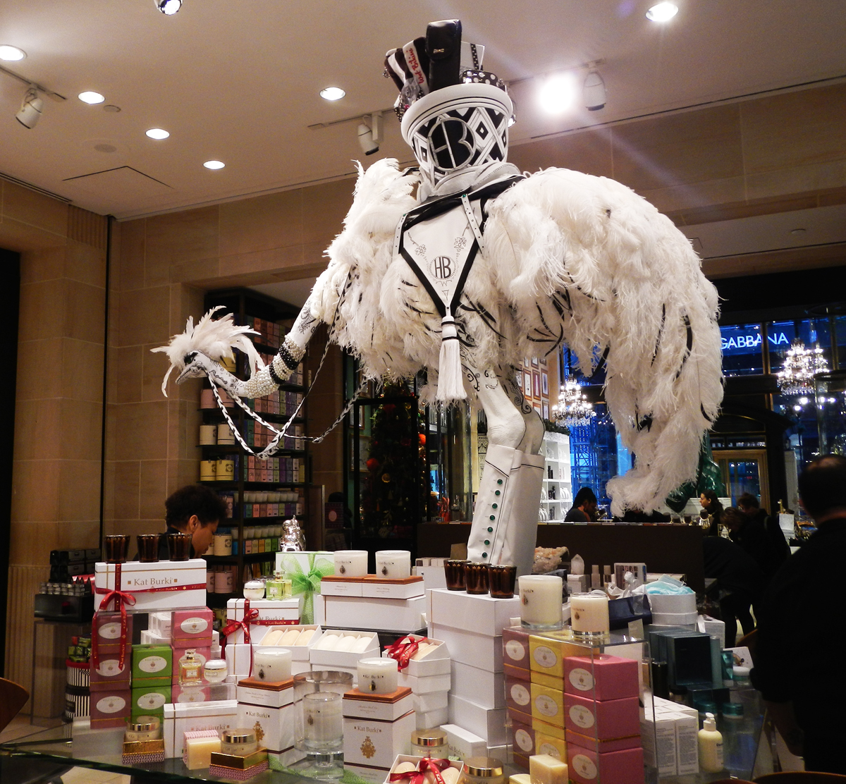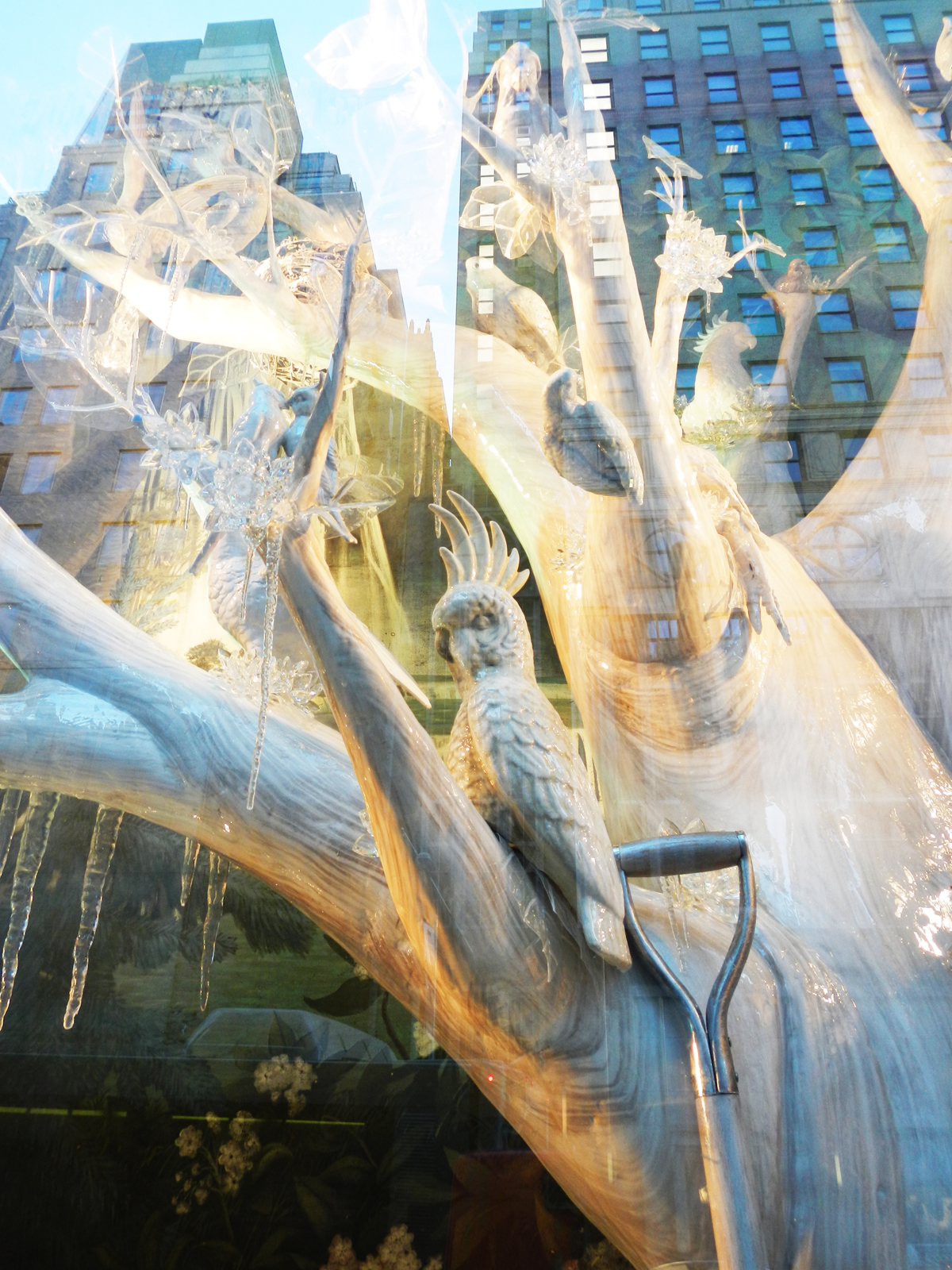 Gabrielle blowing her horn is always a welcome sight – especially when she is heralding in Christmas at the Rockefeller Center. But her piping has conjured up more magic than usual this year – Fifth Avenue is bejeweled with curious creatures. Cartier contrasts a golden jaguar with crimson ribbon, a glittering gekko glowers over Bvlgari, Henri Bendel hosts an ostrich hiding in haberdashery and Berdorf’s boasts a galah front and center of it’s famously dressed windows. The walk is an adventure in itself, although the windows at Saks tell their own tale. Like the pages of a book, one window leads to another telling the artful story of the young yeti who sets off from his snowy home for New York, seeking adventure with a camera and a map. Hmmmmm, sounds familiar….. but how will it end? According to the windows, you ain’t seen nothing yeti….