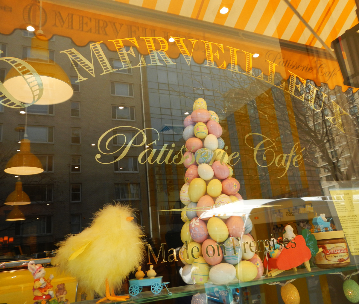 Tempting but not triumphant of the three flavors in offering was the speculoo, coming in third after white and dark chocolate. For me chocolate and Belgium have long been two words with winsome association, but speculoo sounds sans the confiture spectrum. In fact Specaloos are spicy European shortbreads, made with ginger, cinnamon, cloves and nutmeg. Crushed and sprinkled around creamy meringue, they would make a strange but interesting alternative. A disarming diva. If the fluffy chicken in the window is anything to go by, it’s worth a taste….