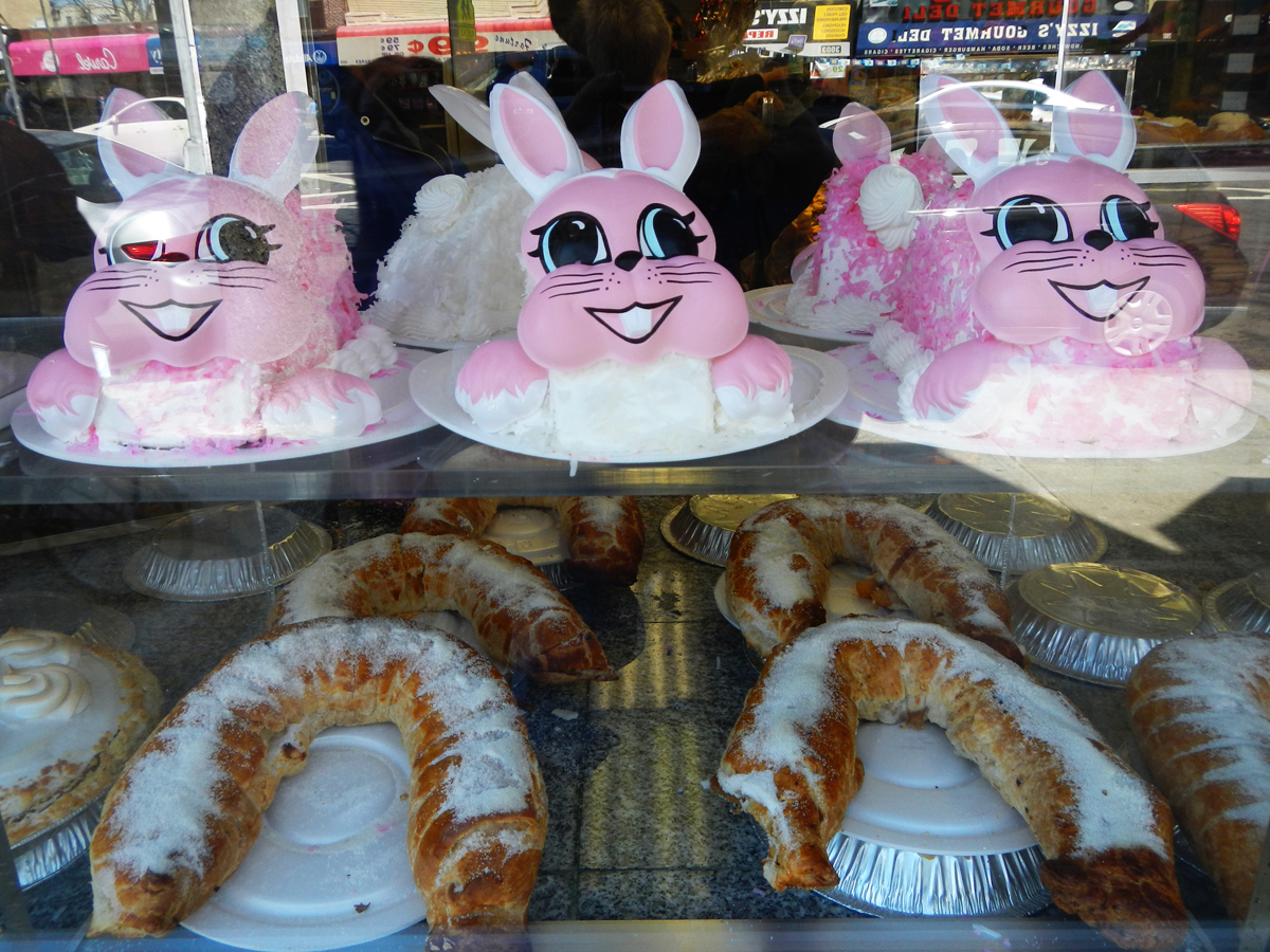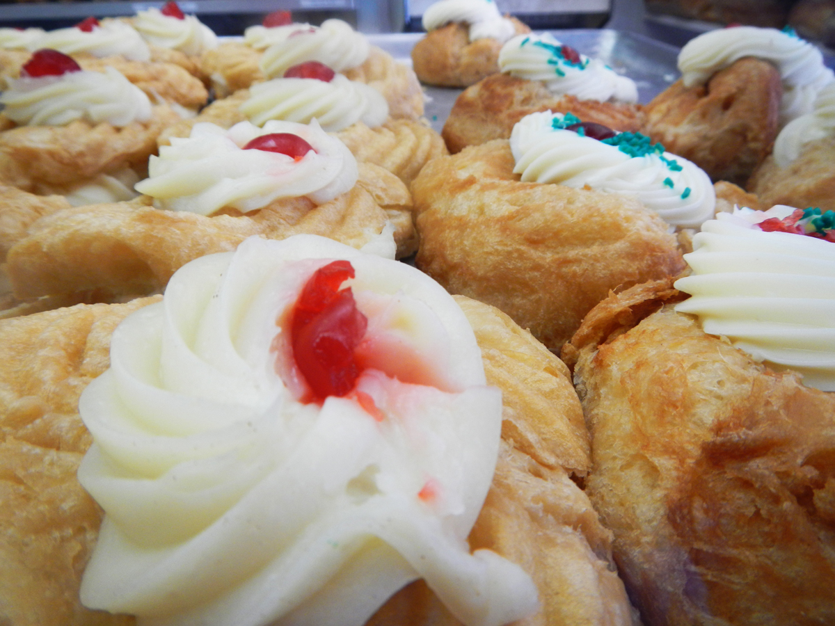 Zeppieri & Sons have been kneading for their neighborhood for over 50 years and on Easter Saturday most of their community were queuing when I arrived. Regulars knew what they wanted, ordering dozens of cannoli’s, whole coloured egg pastries and apple horseshoes. There was bread of every shape, biscuits in multi colors and happily masked white coconut bunny cakes. The hot cross buns I had been hunting for weeks were on offer but were overshadowed, nay hidden, by towers of honey rolled Struffoli’s – no doubt an indication of divine direction to new temptations. And so to the Saint Josephs… The special sweets looked misshapen and would not have been my first choice. But who can anticipate a religious experience? Of the alternate offerings, custard or connoli cream filling, I went with the latter and Easter will never be the same.