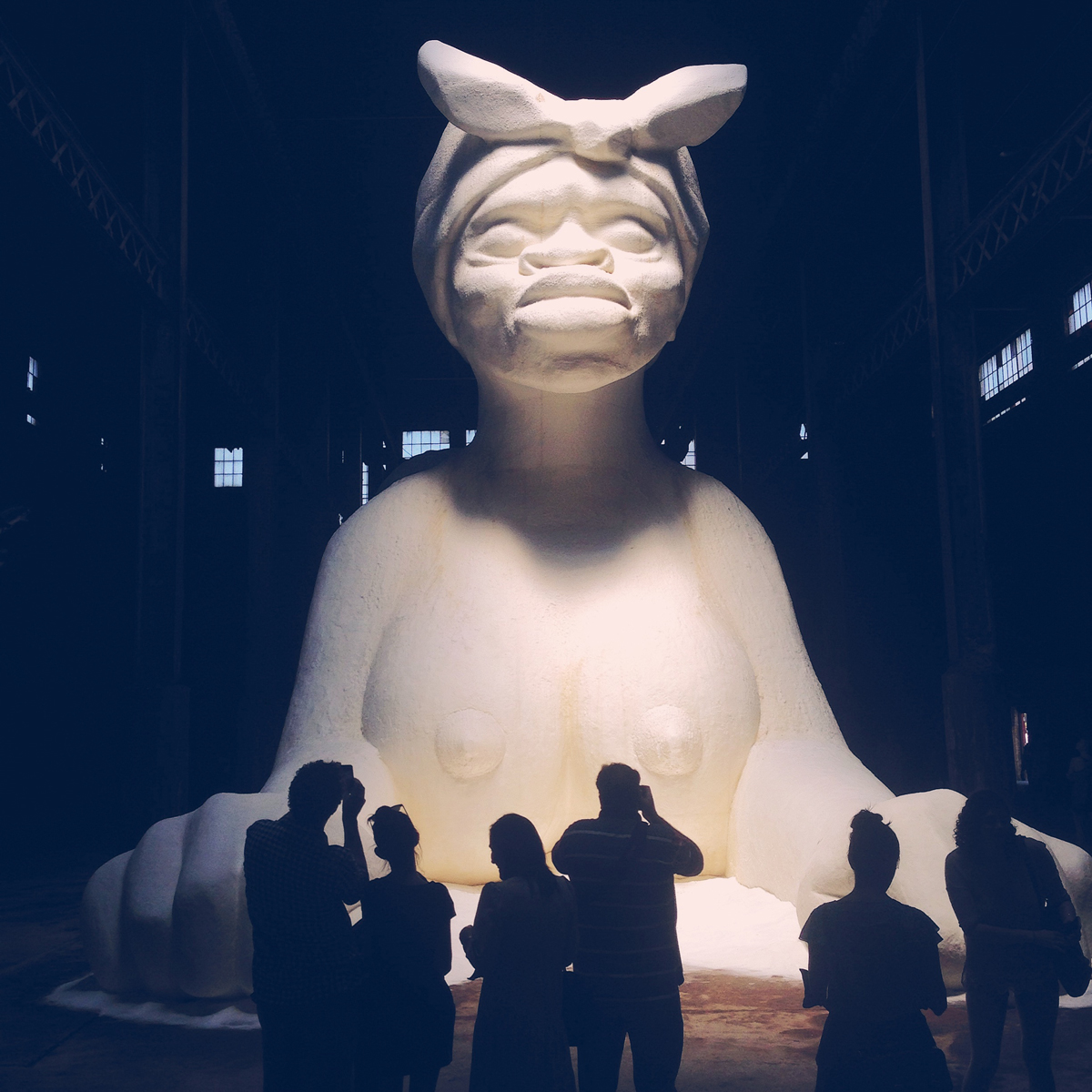 What has long been a hallmark in the midst of increasingly hirsute hipsters in Williamsburg is about the meet a sticky end. Domino’s, once the biggest sugar refinery in the world and a working colossus on the banks of the East River is about to be dismantled. The heritage facade will remain and luxury apartments will eventually grow in the voided historical space. But for a very short time, there is an opportunity to experience the genius of Kara Walker’s art in the contextual reality of the cavernous confectioner. If you are in NYC between now and July 6th, put this on the top of your list.