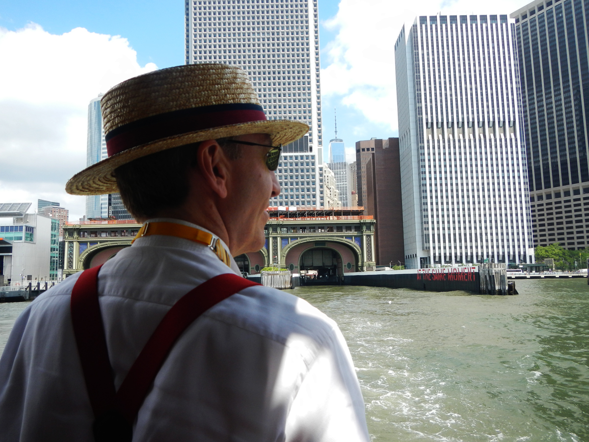 The music lured us on as Michael Arenella and his Dreamland Orchestra tuned in the brass. But the air traffic overhead was distracting, not only because it made a sculptural swarm of 30,000 plastic cups seem strangely real, but because the futuristic aircraft were flying low in synchronized sweeps across the harbour. From Governor’s Island to Ellis Island, around the Statue of Liberty and back again. The V-22 Osprey were an ominous sight and with the Australian PM in town, maybe the hardware was hosting a spin over the sights and the off-shore facilities…
