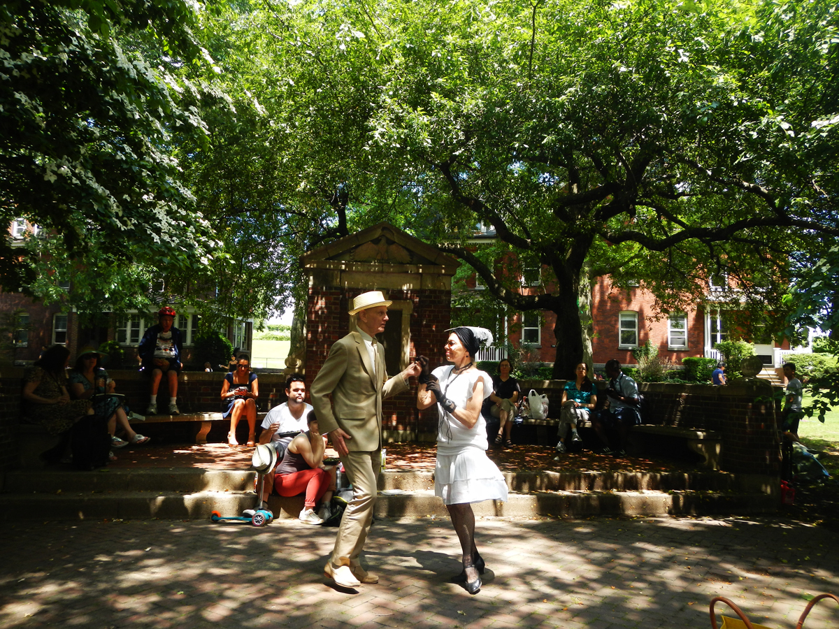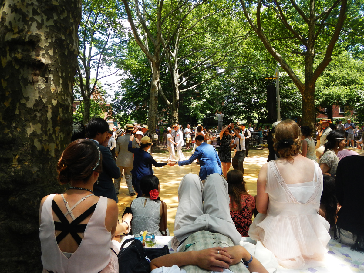 Even the sun could not resist the idea of 50 hammocks, unoccupied, just swinging there solo on Governor’s Island. And not just hammocks. The entire eastern end of the island has been transformed from navy stronghold to public park, with rolling green playing fields, forests of trees, and telephoto art dialed in for the season. With swings there are also swingers, and the annual Jazz Age Lawn party was about to kick off. So after days and days of rain and thunderstorms, the clouds parted and under sunny skies Sean & I packed a picnic and joined the flappers in the queue for the ferry…
