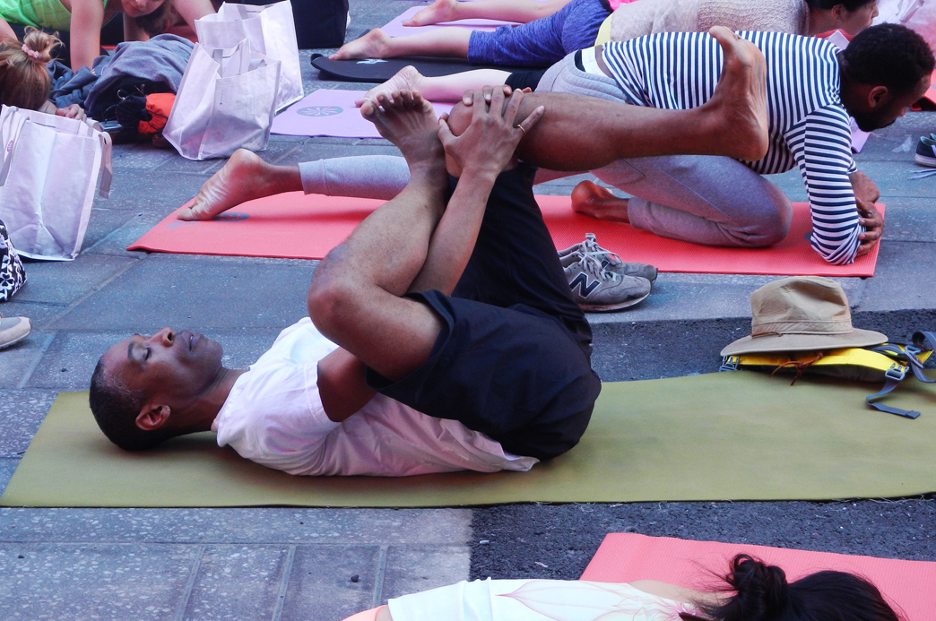 The summer solstice breathed energy into the heart of Times Square at sunrise this morning with thousands of disciples inhaling the light and expelling the darkness. The instructor managed to focus the crowd and be almost oblivious to the surrounding neon extravaganza. It was a collective meditation that enthused me by proxy. Historically, my downward dog was never really up to scratch despite sporadic sessions of good intent, but the freshness of the morning and the celebration of the day gave promise of greater inspiration to come.