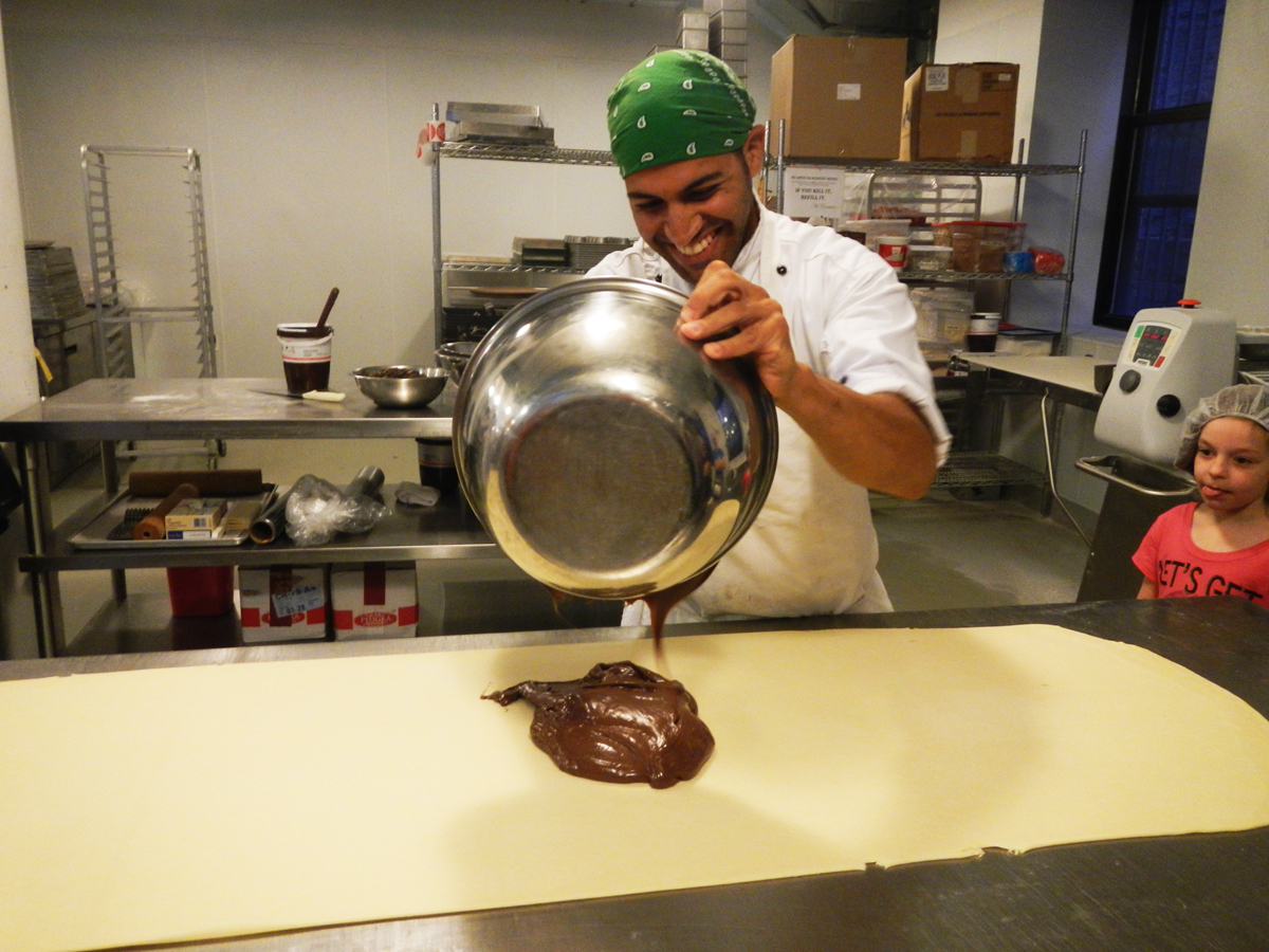 Breads Bakery is one of my favorite temples of indulgence that offers more physical sustenance than spirituality – although with chocolate these boundaries are not so clearly defined. For the solstice, Sean and I joined a tour of enthusiasts who were invited to share the specialness of ‘the back’ of the bakery. Here we found Adir, the chief pastry maker and his girlfriend Sharon, a mechanized rolling pin whose intimate time with the chef left no room for contenders. Days can start at one am, and with a record set of 530 chocolate babkas sold in one day, Sharon and Adir look to be an item for some time to come.