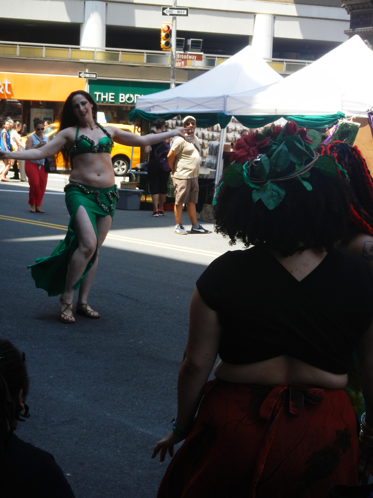 I hip hopped on my bike intending to swing by my current favorite sculpture at Union Square when I was lured by the sound of belly dancing music. Astor place was full of fortune tellers, goth fashion stalls and witches waiting for center stage. The third annual Witch Fest was brewing, having cast a spell on local authorities to ensure their festival would proceed despite the lack of ‘indigenous content’ required for a street permit. Connections to the occult also gave them license to add a K to magick. The girls were having fun but I preferred flying on and taking inspiration from the dreams of ‘Think Big’ who will be looking to the heavens until October. In a city where anything goes, a double shuffle in those size 12’s will be fantastick enough…