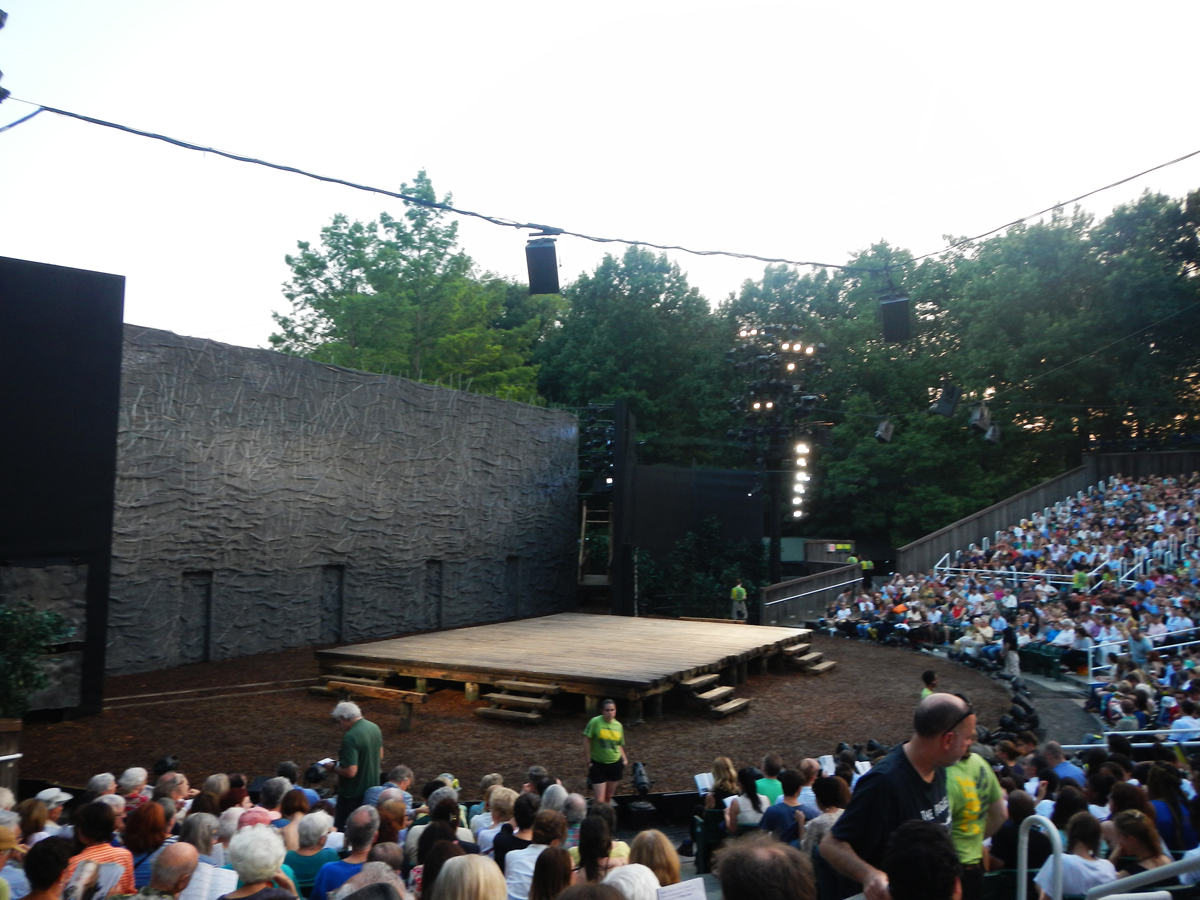 Shakespeare would be delighted. Not even a pound of flesh could procure a ticket for his current season in Central Park. Entry is completely free of course, but the only way to join the 1,800 crowd in the open air Delacorte Theatre is by lining up hours in advance or by striking it lucky with the virtual lottery draw. Of the latter, I applied every day for weeks for the first billing of Much Ado About Nothing, and achieved just that. But for the opening night this week of King Lear, I really scored. Not only did I win two tickets, but the seats gave us an excellent vantage point, close enough to feel part of all the drama on stage and at the same time to join the whisperings of the trees surrounding us.