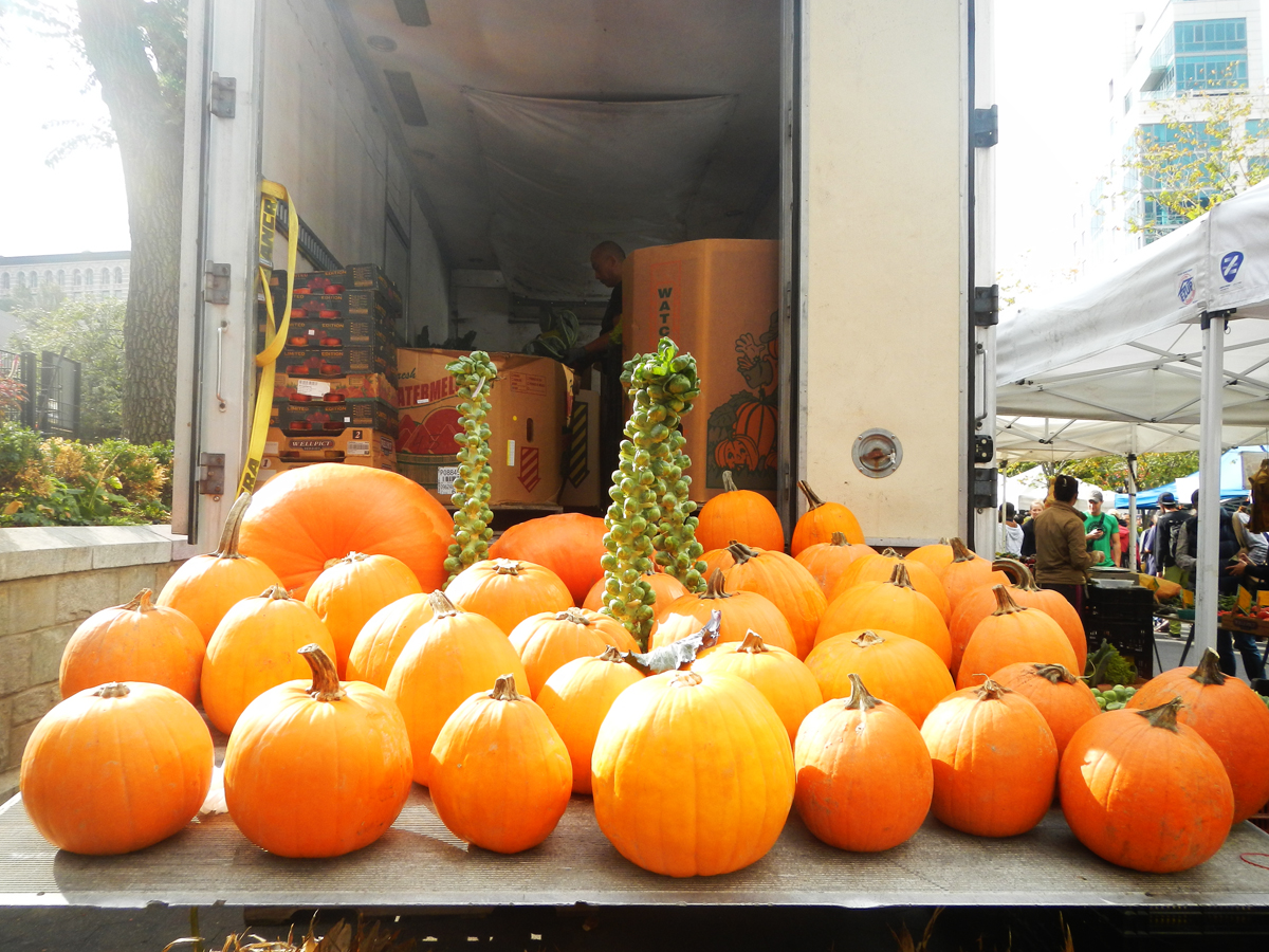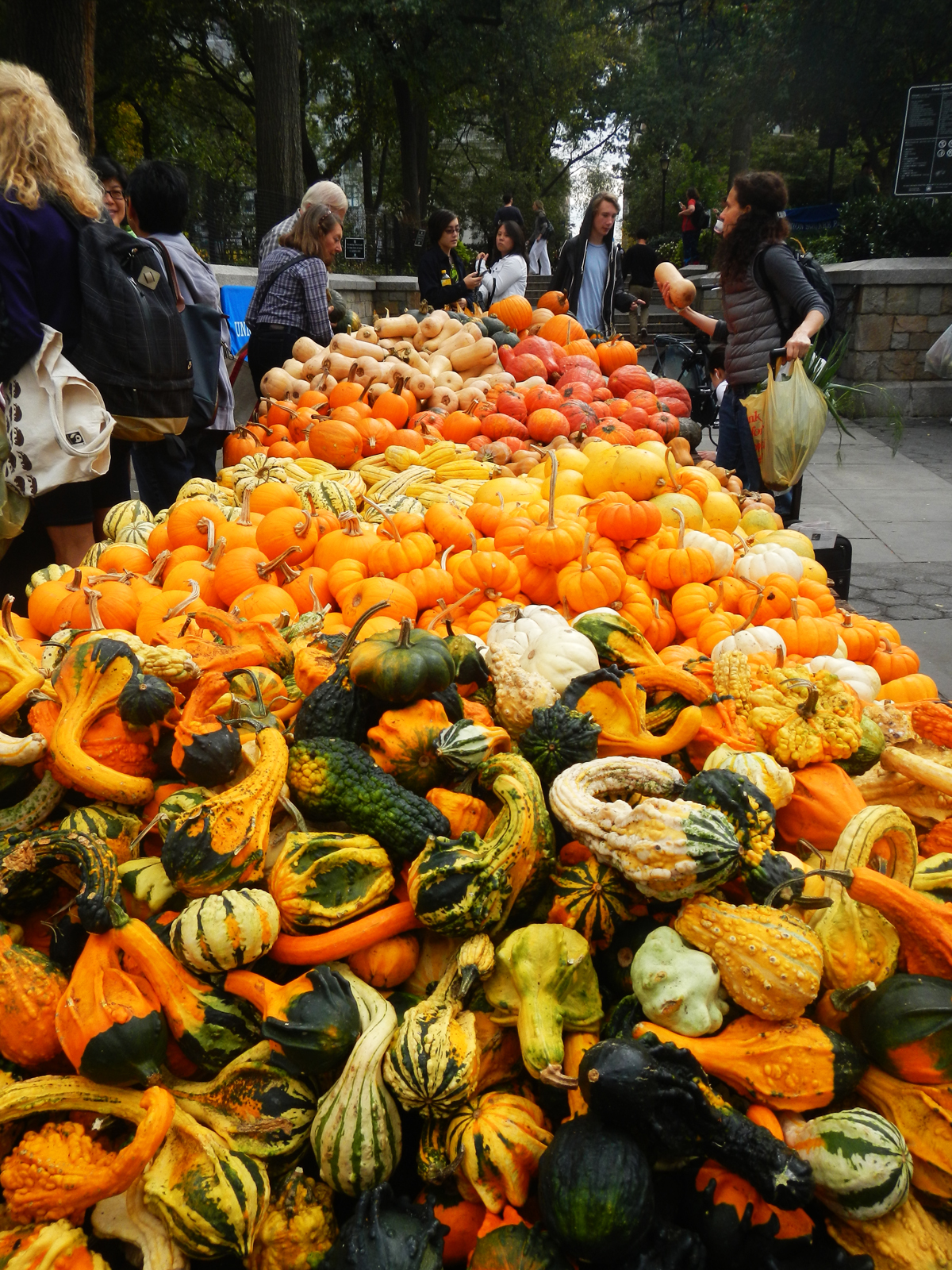 The Farmer’s Markets in Union Square are the best place to be in NYC on a Saturday morning. At any time of the year the Square is full of bustle and seasonal colors and tastes, but there is something special about this time of the year when pumpkins take on a magical quality. While there is no pretence that most of these golden gourds are better to look at than consume ( same story x 10 with the stalked brussels sprouts! ), the process of choosing a perfect pumpkin is a study in style. Children opt for size and impact in the haunting of Halloween. Squash and butternut become pies, bagels and even pumpkin salted caramels. Gourds are gorgeous just for their geometrics. But no wonder the local hoarders prefer nuts. As I paused at the back end of a truck piled with potential pumpkin purchases, a squirrel dug around the park in anticipation of burying his Thanksgiving feast. He saw me, hesitated, and then bounded away – pumpkins may be too big to bury, but nuts are definitely too small to share…