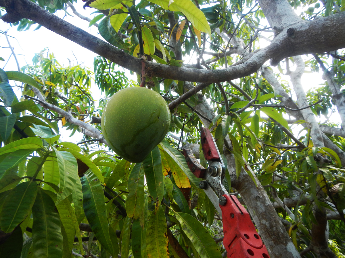 The process of extracting the gold is not without risk. Some trees shimmy with the warning  of thousands of insects as you approach, and the biggest mangoes are invariable in the heavens where the green ants dream. When awakened they stream relentlessly towards you down the 20 foot length of your extended picker, tactical and determined to hold position. But with a nugget of at least a kilo to be scored, the reward defies you to call ‘chicken’ before maneuvering the mango to safety.