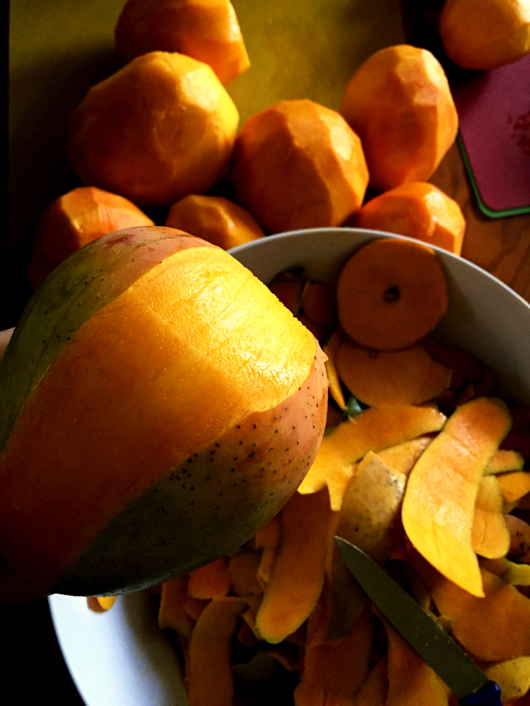 The gold rush in Australia is far from over. In fact if you are in Darwin at this time of the year, it is only just beginning. Recently, after 37 hours in transit from NYC, what I thought was the sandy irritation of jet lag in my eyes was actually the beginning of gold fever. Mango fever. Golden, luscious, six-is-never-enough mango fever. Once it takes hold you cannot leave the house without a picker. You cannot start the day without a smoothie, or some mango muesli, and you certainly cannot say no to mango cheesecake ( NY style of course ). Cooking mango leather or cutting moons and mezzalunas from perfectly ripe fruit is equally satisfying – although mostly in silence, as each new piece offers the hushed anticipation of finding glowing yellow under dark green skin. My sister Therese has the gift, she is a mango whisperer who talks Humpty Doo and KPs ( Kensington Prides ) with an urgent passion. The season is short and time is of the essence. Once the collusive cartels of bats and mango geese move in, the game is all over.