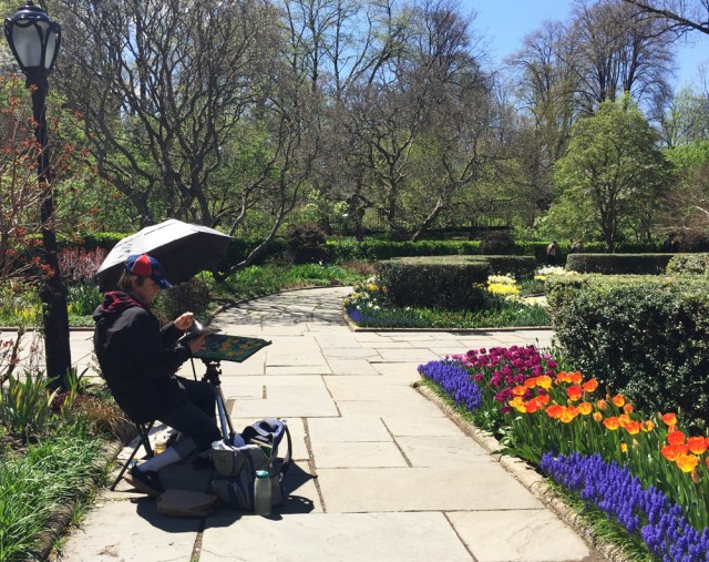 Heaven had a geographical location this week. As fast as green leaves were unfurling from wintery starkness and lilacs proffered a perfume worth waiting for, blossoms tumbled over each other, as pink and then white and then pink again created a spectacle of beauty in Central Park. Like watching floral fireworks, people oohed and aahed and then paused, wanting to somehow make it last. The show will dazzle for the coming days – at the Conservatory Gardens in particular, so check your wings and enjoy the moment…