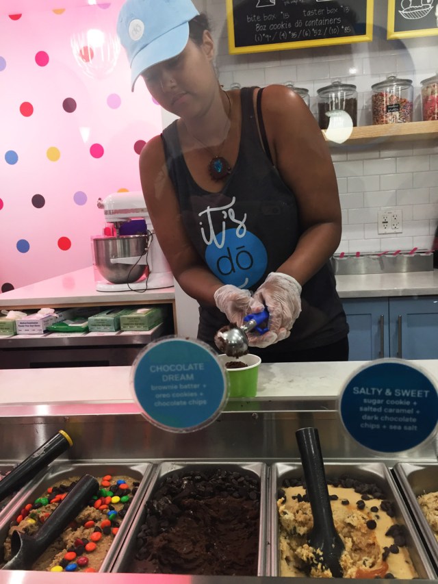 A new bakery in NYC is breaking all records. Since opening in January people have waited up to three hours to get to the front of the queue. The craze is not for a new style of cronut, the deep-fried cream-filled creation of Dominique Ansel, or for the divorce themed cupcakes of Sweet Revenge, this sweet shop has a totally different attraction. Served in cones and cups or blended in milkshakes, choices like Fluffernutter, Gimme S’More and Peanut Butter Snickerdoodle could be classic American ice cream, but instead they are flavours of cookie dough, raw cookie dough.