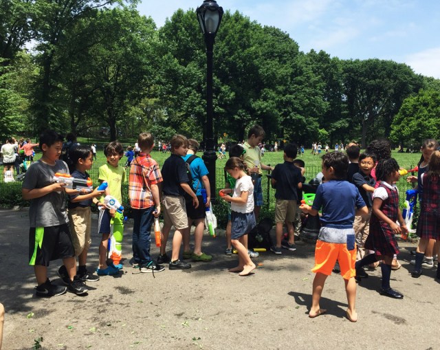 The water fountain was the only reprieve. No shooting, water bombs or spraying while waiting to refill. Or at least that was the order than everyone yelled if they were on the receiving end rather than the giving. While tar was melting on tarmacs around the country and the heat wave was baking the Big Apple, dozens of kids in Central Park took to water pistols of every shape and capacity to survive the day. What fun. Welcome to summer!