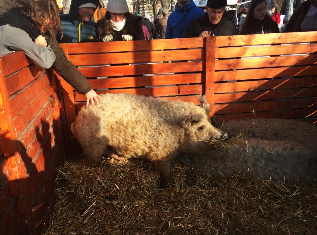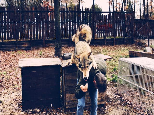 Google can take no responsibility for getting us there. The old green trains, the HEV, that extend out from the city metro system do not show up as options in Google maps. Maybe these old Soviet-built transports are too shaky to pick up a signal. But with their moody velour upholstery and under-seat pipe heaters, the ride is an adventure in itself. So on a freezing day last week, Sean and I headed towards the Hapsburg royal retreat in Gödöllő with some wild ambitions. Our film script calls for wolves to run with the stylish but nasty femme fatale, and at the Horkai Animal Center, Zoltan had some furry actors looking to snap up a role.